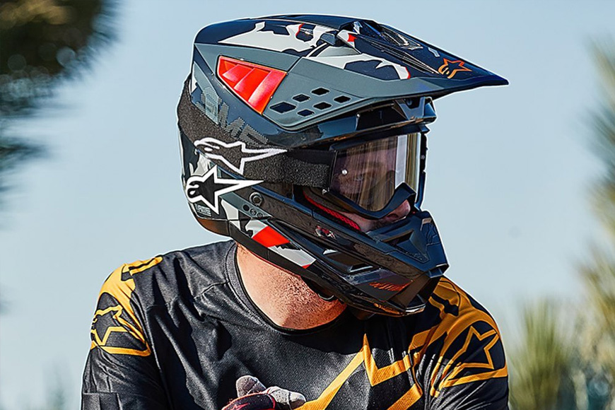 Helmy na motokros primárně nemají žádné plexi a ochrana očí jezdce je řešena pomocí MX brýlí. Prioritou je ochrana hlavy a tak bývá většinou přední část helmy, která kryje bradu, zesílena proti nárazům (například do řídítek). Helmy jsou doplněny štítem, který prioritně chrání před sluníčkem a odletujících kamenů při závodech. Velice důležitá je váha těchto helem, proto na ni při výběru dávejte opravdu pozor. Motokrosová přilba se hodí takřka výhradně pro fyzicky náročnou jízdu v terénu a můžete ji využít i na čtyřkolky.