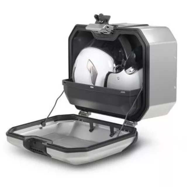 celohliníkový aerodynamický kufr s vyraženým logem Shad, patentovaný uzamykací systém z nerezové oceli, pouze pro boční montážní sady 4P Specifikace: - Kovaná hliníková slitina 1,2 mm - Kvalitní nerezové panty - Snadné otevření, uzamčení i vyjmutí jednou rukou - Integrovaná rukojeť pro snadné přenášení - Dvojitý uzamykací systém z nerezové oceli - Maximální nosnost 10 kg - Navrženo a vyrobeno ve Španělsku - Vhodné uchycení na montážní systém 4P - Barva: stříbrná - Rozměry: 49,5 x 41,8 x 28,2 cm Shad katalog
