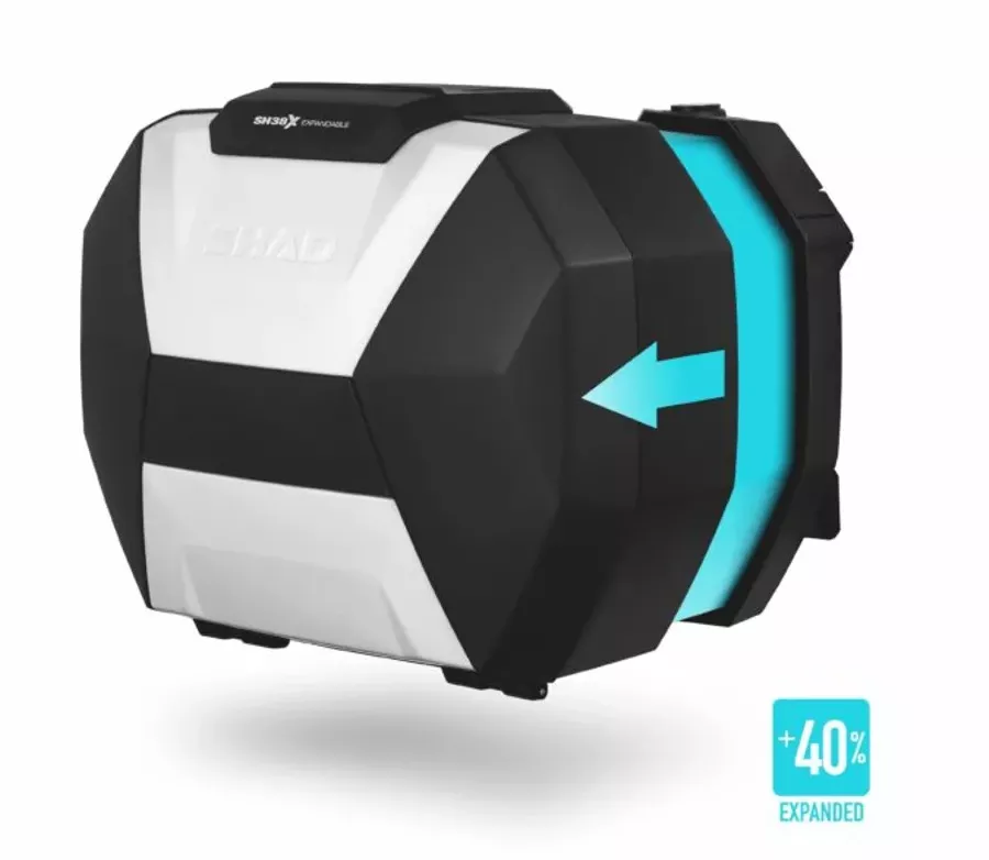 Model SH38X se tak připojuje ke stávající řadě rozšiřitelných horních kufrů SH58X a SH59X, což umožňuje nejnáročnějším a nejpokročilejším motorkářům mít k dispozici sadu ROZŠÍŘITELNÝCH horních a bočních kufrů.