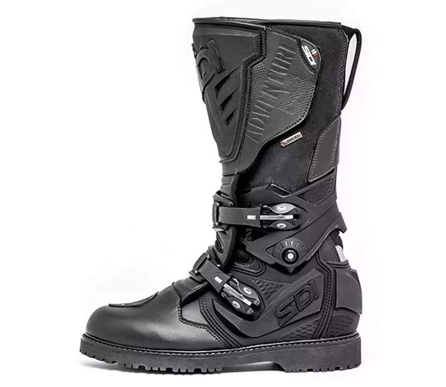 Technomicro je materiál složený z mikrovláken, které jsou tisíckrát tenčí než je hedvábí. Chová se jako přírodní kůže, nicméně je pevnější, měkčí a lehčí. Navíc má ochranu vůči vodě, rychle vysychá, je prodyšný a je ideálním materiálem pro výrobu svršku obuvi. Oděru a plísním odolný materiál se čistí lépe než kůže. Neroztahuje se a je odolný vůči působení povětrnostních vlivů. Společnost Goretex testovala vzorky Adventure a dala SIDI zelenou k výrobě bot s tímto mikrovláknem. SIDI věří, že se jedná o velmi dobrý krok dopředu, protože mikrovlákna jsou high-tech materiál, dokonce lepší než usně, na kterých zůstávají stopy jako záhyby. Navíc tento nový materiál je téměř totožný s kůží. - Kontrastní horní textury - Nepromokavá a prodyšná Gore-Tex membrána - Tvarovaný chránič holeně z tvrdého plastu - Speciální chrániče kotníku - Zapínání na velký suchý zip nad kotníkem - Micro-nastavitelné upínací přezky - Po celé délce vnitřní návlek - Pevná nylonová stélka - Vyjímatelná podpora klenby - Vnitřní chrániče paty, kotníku a špice - Gumová podrážka s protiskluzovou úpravou - Polstrovaná holeň s nylonovou deskou - Dvojité prošití na všech vysoce namáhaných místech - CE certifikace Gore-Tex® - použití membrány Gore-Tex® v motocyklové obuvi je skutečnou revolucí. Podařilo se sloučit dříve nemožné – voděodolnost a prodyšnost. Celé tajemství spočívá v mikro-porézní struktuře Gore-Texové membrány. Ta obsahuje půl druhé miliardy mikro-pórů na 1cm2. Kapka vody, která je mnohem větší než tyto póry se dovnitř nedostane. Na druhou stranu molekuly potu jsou stále menší, čímž je vyloučena jakákoli vlhkost uvnitř boty