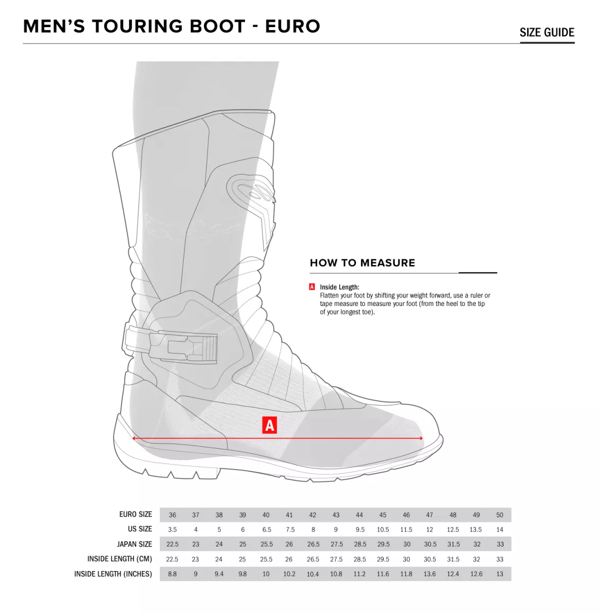- pro dlouhé vyjížďky v jakémkoliv klimatu - kožená konstrukce poskytuje prvotřídní odolnost a dlouhotrvající pohodlí - Gore-Tex membrána v celé botě zajišťuje 100% voděodolnost a výbornou prodyšnost - tvar boty je navržen tak, aby poskytoval komfort při dlouhých jízdách na motorce - speciální konstrukce na špičce ke zlepšení kontroly řízení - rozsáhlé přední a zadní strečové zóny z mikrovlákna pro plynulý pohyb - postranní vstupní systém s elastickým zipem a široký suchý zip - zesílený kotníkový chránič je upevněný pod vrchní částí kůže na obou stranách - podložky pro lepší řazení chránící horní část nohy - vnitřní nárazuvzdorné holenní zesílení pod vrchní částí kůže - zadní reflexní panel pro lepší viditelnost - robustní vnitřní konstrukce na špičce a výztuha paty poskytující ochranu při pádu - tvarovaná polyamidová vložka do obuvi poskytuje zesílení na holeni - vyjímatelná anatomická EVA stélka - speciálně vyvinutá podrážka Alpinestars