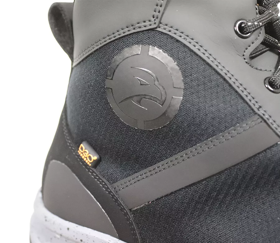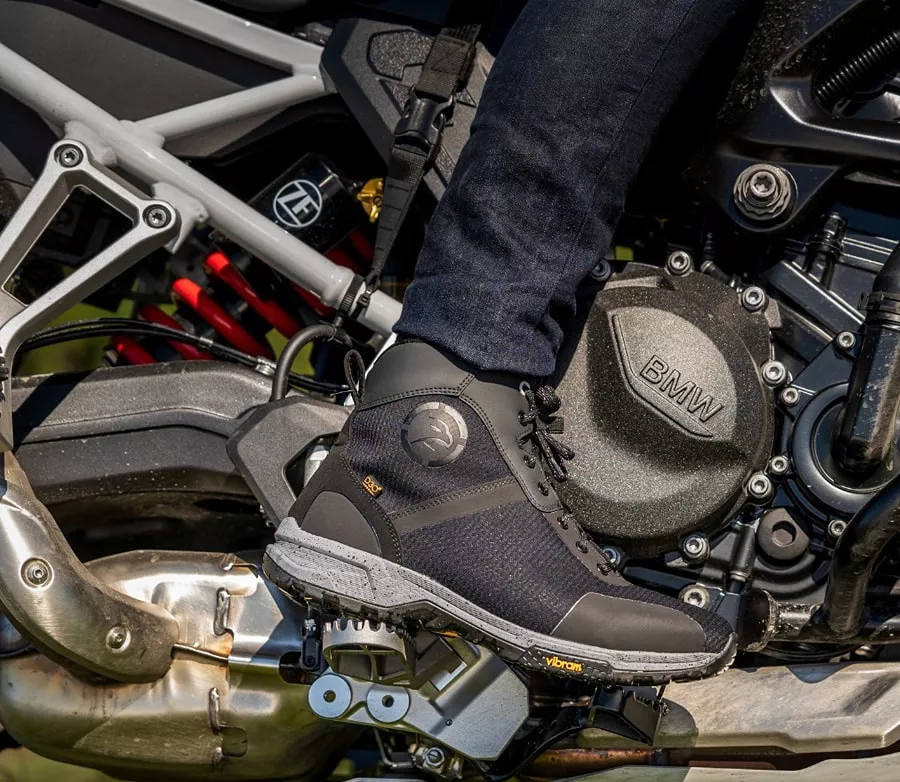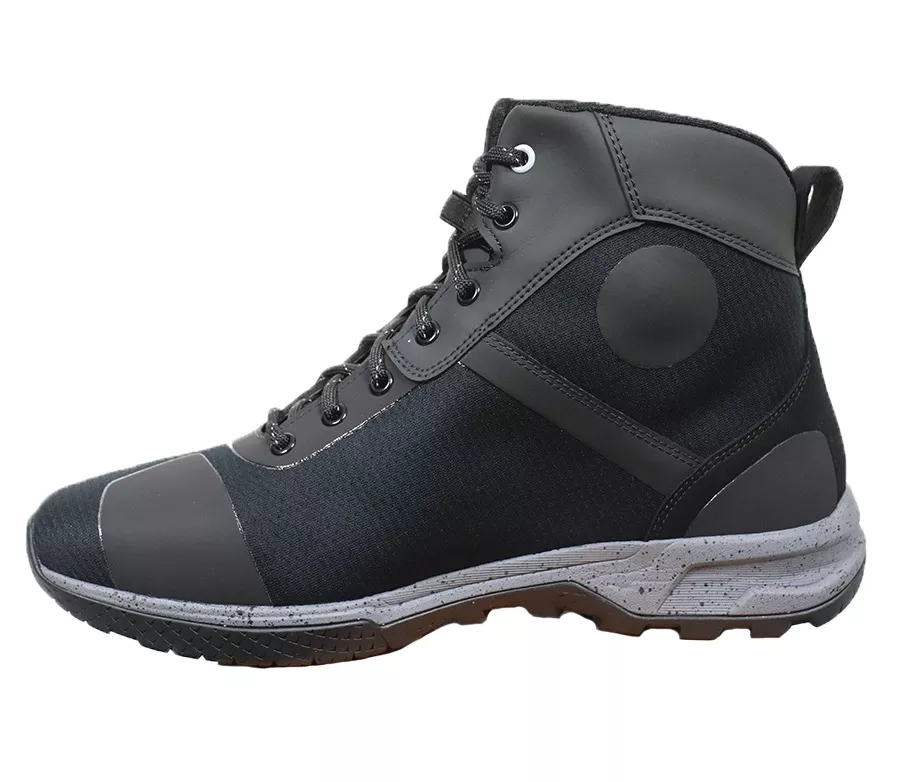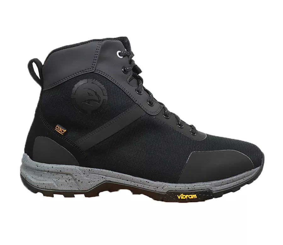 - Textilní svršek „Air-Tech“ a membrána „High-Tex“. - P.U. zesílení na špičce a kotníku. - Výztuž D3O v oblasti kotníku - Zapínání na tkaničky. - Pryžový podešev Vibram. - Vyrobeno v Itálii