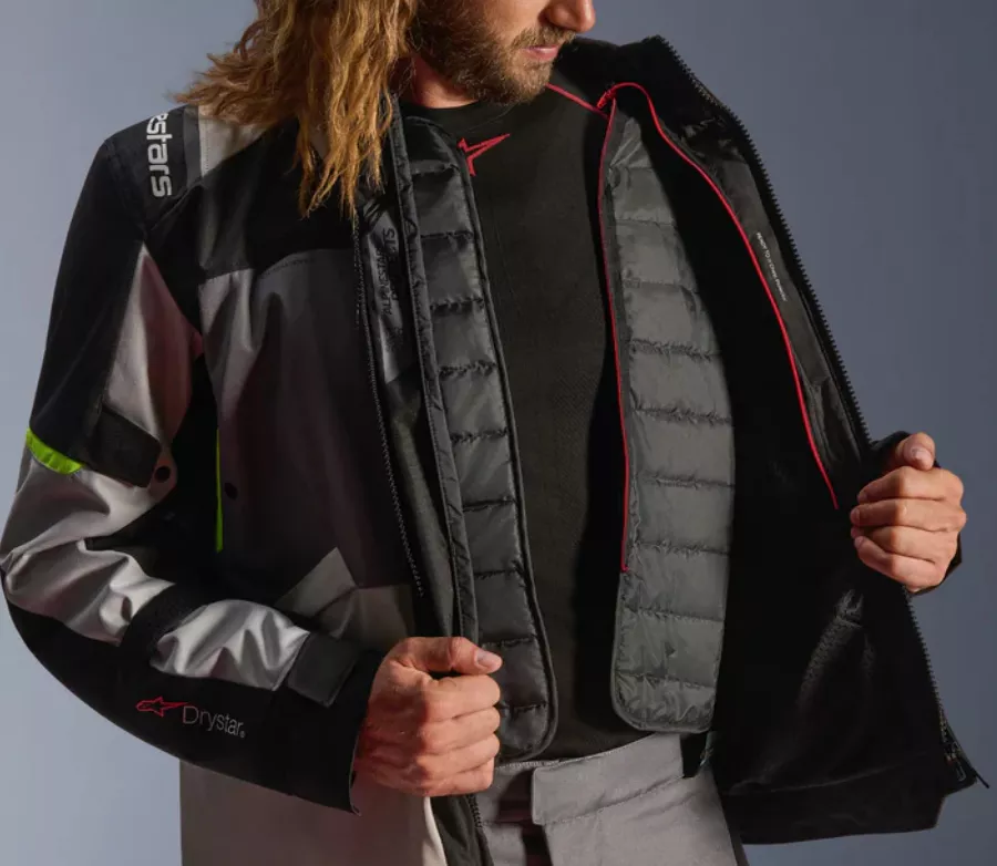 Pánská bunda Alpinestars Andes v4 Drystar® je univerzální adventure / touring bunda navržená pro celoroční použití. Laminovaná Drystar® membrána zajišťuje plnou nepromokavost a prodyšnost, zatímco kombinace odolné polytextilie a ripstop materiálu zvyšuje životnost v namáhaných místech. Odnímatelná termo vložka, přímá ventilace na hrudi a příprava pro airbag Tech-Air® dělají z Andes v4 spolehlivou volbu pro dlouhé cesty i každodenní dojíždění. Bezpečí • Chrániče ramen a loktů Nucleon Flex Plus CE Level 1 • Tech-Air® Ready – kompatibilní s airbagovými systémy Alpinestars • Zesílení ripstop a PU na ramenou, loktech a předloktí • Příprava pro hrudní a zádové chrániče Nucleon (volitelné) • Certifikace CE – Kategorie II EN17092-4:2020 (Class A) • Reflexní prvky pro lepší viditelnost Pohodlí • Laminovaná Drystar® membrána – 100% nepromokavá a prodyšná • Odnímatelná celoplošná termo vložka (100 g tělo / 80 g rukávy) • Předtvarované rukávy se strečovými zónami • Nastavení pasu, rukávů, předloktí a zápěstí • Prodloužená zadní část pro lepší krytí při jízdě • Smyčka pro vedení hadičky hydratačního vaku Ventilace • Přímé ventilační otvory na hrudi • Zadní překrytí pro odvod teplého vzduchu • Optimalizované proudění vzduchu i při nižších rychlostech Úložný prostor • Více nepromokavých a voděodolných kapes • Dvě vnitřní kapsy • Velká zadní kapsa • Cargo kapsy s rychlým přístupem Zapínání • Přední voděodolný zip VISLON® • Nastavitelný límec se stahováním