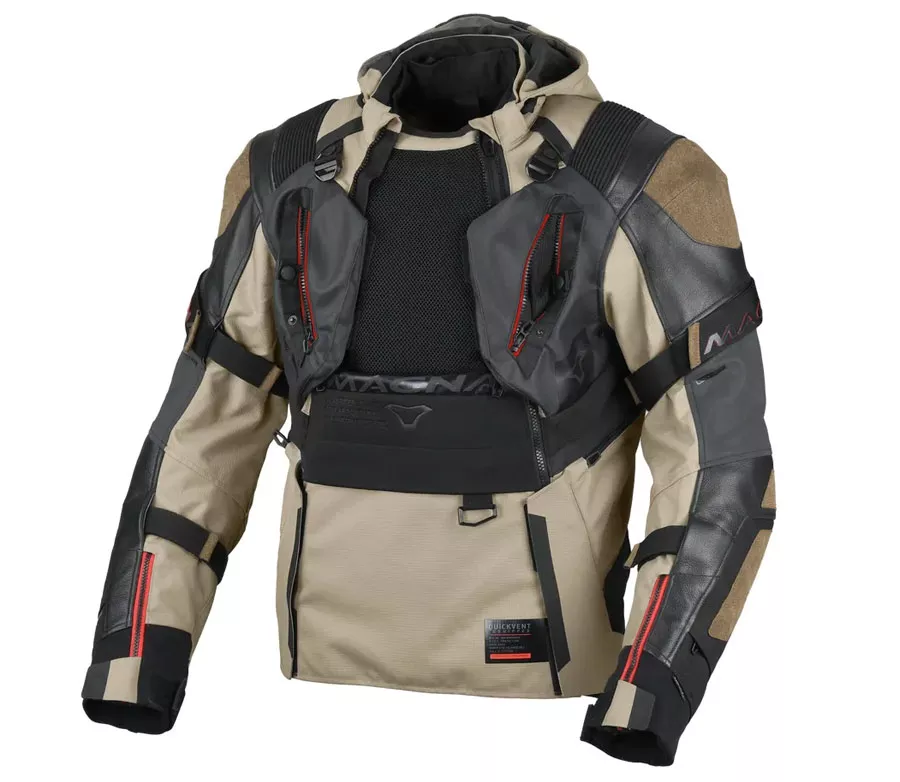 Třívrstvá bunda ve stylu anoraku pro jezdce do všech povětrnostních podmínek a ročních období. Bunda Tryton byla vyvinuta na základě bundy Bradical a je první třívrstvou bundou ve stylu anorak na trhu. Je vybavena hlavním zipem mimo střed těla, který vede po celé délce bundy, a velkou klokaní kapsou na přední straně. Je vhodná pro všechna roční období díky odnímatelné termovložce v kombinaci s odnímatelnou membránou Raintex ML. Membrána je velmi příjemná na těle, protože je laminovaná na síťovině a proto se nelepí na kůži. Bunda je velmi diskrétně vybavena reflexními prvky technologie Night Eye, abyste byli lépe vidět. Tato technologie odráží světlo zpět ke zdroji, takže na silnici vás rozhodně nikdo nepřehlédne. Velké větrací panely z 3D síťoviny na hrudi, zádech a pažích zajišťují dostatečné větrání v teplejších dnech. Nový systém Quick Vent je vybaven dvěma přezkami u límce, které po zatažení otevřou dodatečný výstup pro teplý vzduch. Přezky lze připevnit ke knoflíkům na náprsních kapsách, aby byla ventilace stále otevřená. Jednotlivé vrstvy jsou k sobě připnuty systémem Easy Cuff – který využívá zip namísto patentů. Tato šikovná vychytávka spojuje vrstvy k sobě a zabraňuje tomu, aby se vám při oblékání nebo svlékání bundy zasekla ruka do jiné vrstvy. Bunda Tryton je připravena na použití MUPBP-1 na záda. Díky modulární výbavě máte možnost rozšířit kapacitu zavazadel. Například můžete použít bederní tašku MUHB-1.