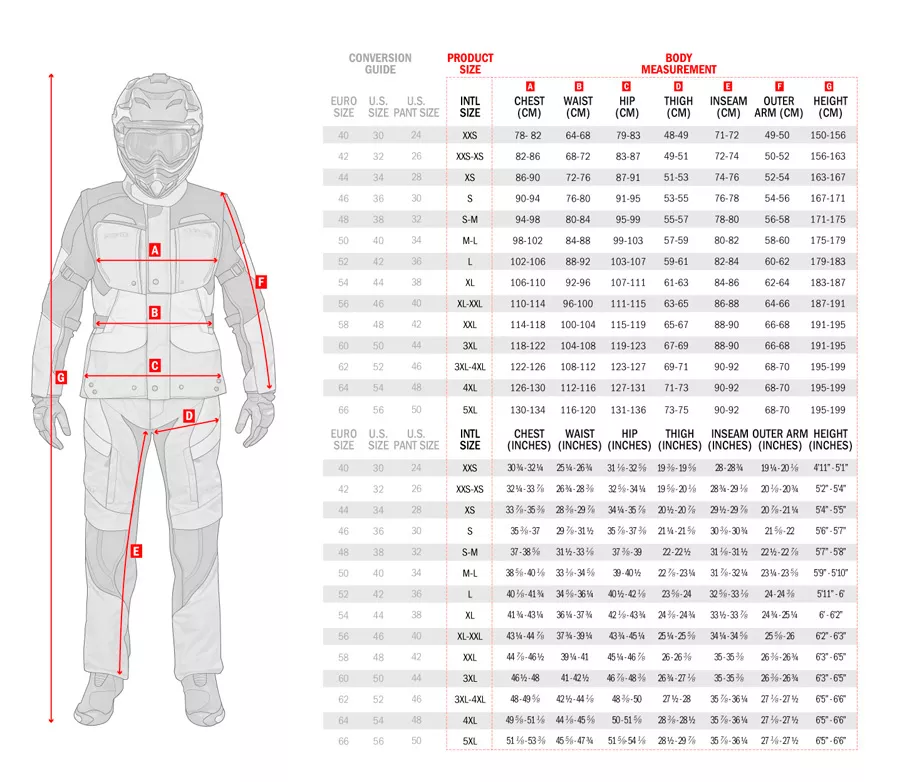 Pokud vybíráte nové oblečení, boty, helmu apod. a nejste si úplně jisti přesnou velikostí, je potřeba se důkladně přeměřit a naměřené hodnoty porovnat s tabulkami velikostí.