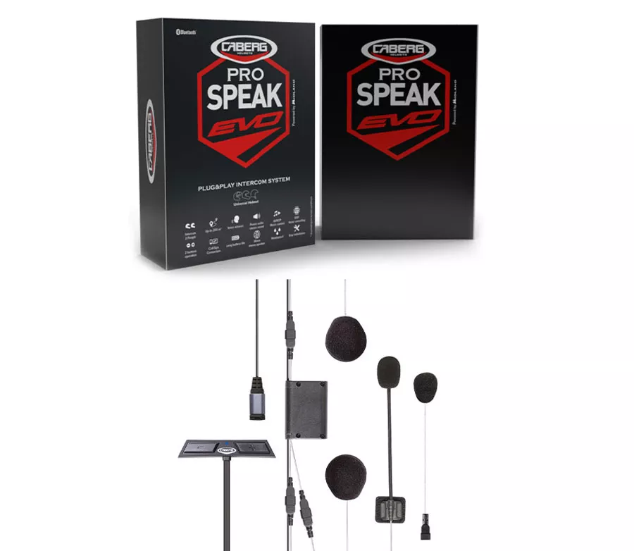 S novým komunikátorem PRO SPEAK EVO můžete poslouchat/spravovat hudbu ve stereu, uskutečňovat a přijímat telefonní hovory, mluvit se spolujezdcem nebo s dalším jezdcem na motocyklu až do vzdálenosti 200 m s digitální kvalitou a systémem DSP pro potlačení šumu. Je kompatibilní s integrovanou konektivitou s řídicími systémy dodávanými hlavními výrobci motocyklů (BMW, KTM, Ducati, atd.). Pro zajištění maximální bezpečnosti splňují modely helem Caberg homologované ECE 22.06 také všechny požadavky stanovené nařízením EU s nainstalovaným komunikačním systémem Caberg PRO SPEAK EVO. - univerzální interkom pro spojení se spolujezdcem, či pouze pro potřeby jezdce - Bluetooth 5.0 s podporou sluchátek, hands free profilu (HFP), A2DP, AVRCP - dosah interkomu k dalšímu jezdci je do 200 m - DSP systém pro potlačení šumu - jednoduchá manipulace - hlasové upozornění - šířka mikrofonu 36 mm - lze aktualizovat pomocí počítače - výdrž baterie až 8 hodin - doba nabíjení cca 2,5 hodiny - voděodolný - součástí balení je jednotka, mikrofon s kabeláží pro integrální helmy, mikrofon kulatý s pěnou pro otevřené helmy, extra pěna navíc, extra tenké repráky, nabíjecí kabel Pro helmy: LEVO X / LEVO HORUS X DUKE X / DUKE / DUKE II TOURMAX X / TOURMAX DUKE EVO AVALON X DRIFT EVO RIVIERA V4X FLYON II Download manual