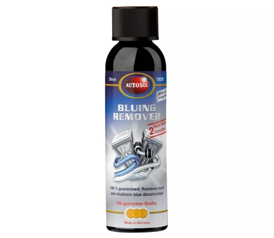 Čistič výfukových svodů Bluing Remover odstraňuje zabarvení výfukových svodů. Pracuje na bázi chemického čištění. Proč používat Autosol Bluing Remover? Čistič výfukových svodů Autosol je vysoce účinný a nepoškozuje povrch výfuků a svodů. A navíc díky chemickému složení naopak pečuje o povrch a zabraňuje rezavění. Přípravek navíc neobsahuje nebezpečné chemikálie a není tedy třeba používat ochrannou masku. Co všechno čistič výfuků Bluing Remover odstraní? - modré, zlatavé, hnědé i černé zbarvení - asfalt - gumu - připečenou obuv Jak Bluing Remover správně používat, aby byl výsledek dokonalý: Podle stupně zapálení od zlaté až po modrou se Bluing remover buď pouze nanese a nechá samostatně působit nebo se jeho účinnost zvýrazní mechanickým působením. V prvním případě se přípravek nanese na zchladlý materiál a po chvíli se setře hadříkem. V druhém případě lze použít drsnou stranu houbičky na nádobí. Tekutý přípravek nanášejte na vychladnutý výfuk. Podle potřeby se může doba působení prodloužit až na 10 minut a aplikaci opakovat. Nenechte ale přípravek na výfuku zaschnout, jinak budete muset aplikaci opakovat. Po nějakém čase se zabarvení znovu objeví. To je dáno tím, že se vlivem vysokých teplot vyplavují na povrch nečistoty obsažené v kovu. Následující čištění je jednodušší a rychlejší. Pro nakonzervování vyčištěného povrchu, prodloužení účinku a dosažení většího finálního lesku je doporučeno použití leštící pasty Metal Polish.