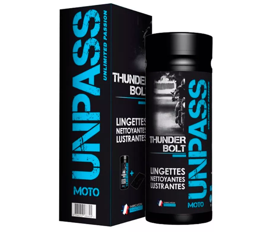 UNLIMITED PASSION představuje novou generaci ALL-IN-ONE ubrousků: THUNDERBOLT. Ubrousky jsou navrženy tak aby poskytly maximální účinnost a usnadnily údržbu vašeho motocyklu. Nadchnou Vás svou čistící silou, univerzálností a schopností obnovit vzhled vašeho stroje …bez námahy, vybavení a bez vody.