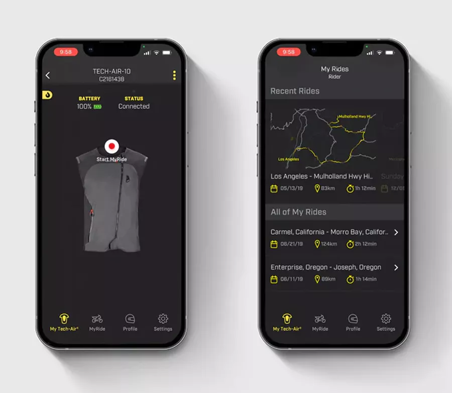 • Nízkoenergetické připojení Bluetooth (BLE 5.0) k aplikaci Tech-Air® umožňuje jezdcům sledovat provozní stav systému, stav baterie a také poskytuje podrobnou mapu jízd přes MyRide