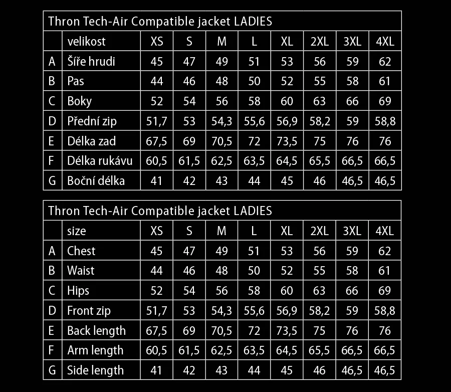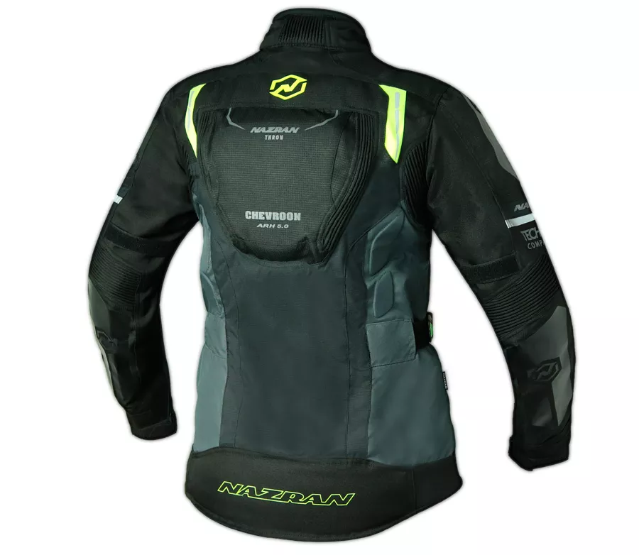 Vrchní materiál: - Polyester Maxtex 600D, Polyester Maxtex 300D, Ribstop Polyester, Samtex Polyester TECH-AIR® COMPATIBLE - ergonomicky navrhnuto pro nošení s airbagovou vestou Tech-Air® 5 CHEVROON ARH 5.0 - originální speciální příprava na zádech pro Alpinestars Tech-Air® 5 vestu, které zajistí maximální pohodlí a funkčnost - zapsán do rejstříku průmyslových vzorů společenství EU vyvinutého společností Bikers Crown Podšívka: - Recyklovaný polyester + 3D Mesh Vnitřní membrána: - nepromokavá, větru-vzdorná a prodyšná membrána GT-150 HYDRO: (nepromokavost / vzdušnost) 10 000 g/m2/24hrs - Nepromokavý hlavní přední zip Chrániče: - součástí vybavení jsou Sas-Tec homologované CE level 2 chrániče loktů a ramen, příprava na zádový chránič Viditelnost: - reflexní prvky na hrudi, zádech a ramenech Ventilace: - 2 přední ventilační kapsy Komfort: - Strečové panely nad lokty a za rameny pro zvýšené pohodlí - Upínací pásek pro úpravu obvodu rukávů - Stahovací pásek v pase Kapsy: - 2 větší přední kapsy na zip - 2 vnitřní kapsy na mobil a doklady - Vnitřní mesh kapsa s čistítkem na plexi - ICE–pouzdro s identifikačními informacemi pro záchranáře v případě nehody - Zip na připnutí ke kalhotám Bikers Crown obdržel pro svoji značku Nazran Motorcycle Fashion jako první a jediný sériový výrobce na světě souhlas od firmy Alpinestars pro používání airbagových systémů Tech-Air 5 do své výroby oblečení pro běžné motorkáře. Celý projekt a specifický vývoj oblečení trval velmi dlouho a byl prováděn souběžně s vývojem Tech-Air 5. Schválené výrobky ve spolupráci jsou označeny logem Tech air Compatible.