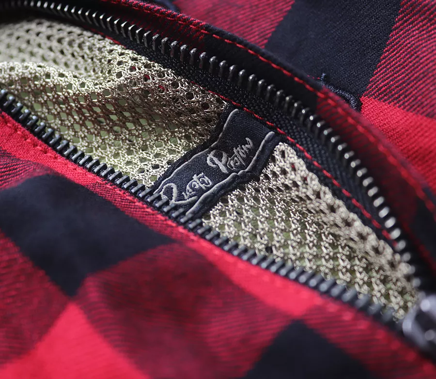 - kevlarová příjemná košile pro motorkáře ve stylu kustom - speciálně vyvinuto pro komfortní a bezpečnou jízdu na motorce - součástí košile jsou homologované chrániče loktů a ramen LEVEL 2 od známého výrobce SAS-TEC s přípravou na zádový chránič, který je možno dokoupit zvlášť - vrchní vrstva: 100% bavlna s kostkovaným vzorem – kompletní podšití z aramidovýchvláken – Kevlar by DuPont 220 g - podšívka z prodyšné síťoviny, která odvádí vlhkost - důmyslně zakomponovaný větrací systém: 2 větrací kapsy na hrudi,1 velká na zádech a extra 2 kapsy podpaží - 2 přední kapsy na zip - 2 hrudní kapsy s klopou na upínací knoflík s RustyPistons logem - 2 vnitřní hrudní kapsy rovněž se zipem na uschování dokladů či mobilu - rukávové manžety lehce dostupné díky zipu a dvěma upínacími knoflíky pro nastavitelnost obvodu ruky – krásné originální detaily s RustyPistons logem - nášivky, kožené logo, výšivka na zádech - originální YKK kovové zipy s designovým jezdcem