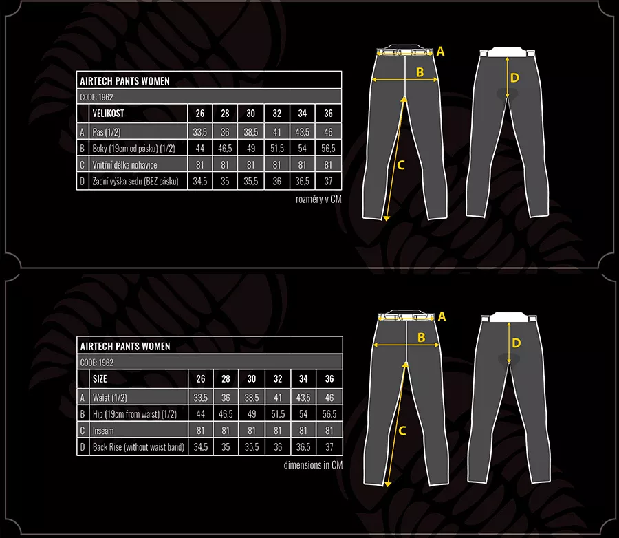 Trilobite Airtech kalhoty vyrobeny pro jezdce, kteří hledají maximální ochranu při jízdě na motocyklu, od silničního cestování až po ryzí enduro. Díky kombinaci džínoviny, strečového materiálu, síťoviny, kůže a oděruvzdorné podšívky v sedu a na kolenou, která je vyrobena z aramidových vláken Kevlar® od výrobce DuPont ™, jsou AirTech kalhoty správnou volbou. Dokonalé odvětrání skvěle funguje díky technologii Air Tech ze síťoviny na bocích a stehnech. Kalhoty jsou dodávány včetně kšand s logy Trilobite, které jsou ke kalhotám připnut na dvojitá poutka v zadní a přední části s velkým suchým zipem pro maximální pohodlí při jejich manipulaci. Všichni motocykloví jezdci ocení pohodlí, které zajistí strečový a prodyšného materiál v rozkroku a vyvýšení pas. Kolenní chrániče Trilobite® jsou součástí kalhot. Volitelně je lze vybavit chrániči boků. Použité YKK zipy podtrhují celkovou kvalitu kalhot. Kalhoty mají designovou kombinaci tmavě modré džínoviny a hnědé ručně voskované kůže, která má velmi výrazný vzhled. K dispozici jsou také ve verzi pro všechny motorkářky. - Vnější materiál: džínovina, síťovina, kůže - Ochrana: aramidová vlákna Kevlar® od firmy DuPont ™ v sedu a na kolenech - Chrániče SAS-TEC CE Level 2 Ergonomické vlastnosti: - Nastavitelná šířka pasu pomocí streče a pásku na suchý zip, - Boční zipy v dolní části nohavic, - Tři vnější kapsy - Nastavitelná výška chráničů kolen pomocí suchého zipu - Vyvýšený pas - Odnímatelné šle Ventilace: - Rozsáhlé panely ze síťoviny, které zajistí dokonalý přísun vzduchu - Barevné varianty: modro-černá Na co se hodí? Sport-touring, enduro, adventure. Dostupné v pánských velikostech (30-44), a dámských (26-36). Kevlar® a DuPont ™ jsou ochranné známky nebo registrované ochranné známky společnosti E.I. du Pont de Nemours and Company.