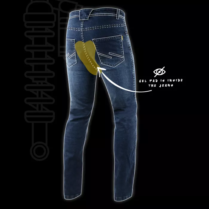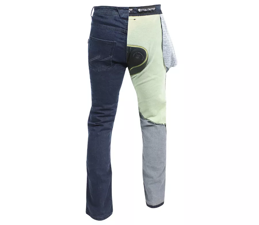 Užíváte si dlouhé jízdy, ale občas vás bolí pozadí? Trilobite Cullebro rifle vyřešily problém. Rovné stylové motocyklové rifle jsou vybaveny gelovým padem, který absorbuje nárazy v sedací části. Speciálně vyvinutý značkou Trilobite. Kombinace gelu a pěny v padu vám zaručí pohodlí na dlouhé cesty. Už nikdy nemusíte dávat na svou motorku nevzhledné polštářky a kazit tak její image. Na delší cesty oceníte nejen jeho pohodlí, ale také správný posed. Při náklonu do zatáčky vám pomáhá lépe ovládat motorku. Máte strach jak bude pad vypadat při běžném nošení? Prostě to zkuste. Nikdo ho neuvidí. Pad je umístěn uvnitř kalhot, takže se přizpůsobí vašemu tělu a není vidět. Samozřejmě, že pad během nošení cítíte, ale víte proč ho používáte a nikdo jiný to nezjistí. Je to malé tajemství, které máte v kalhotech, a které vám zajistí, že na konci dlouhé jízdy budete stále sedět pohodlně. Rifle jsou vyrobené s kevlarovou výztuží na kolenou a zadku a obsahují kolenní chrániče CE třídy 2. Navíc mají přípravu pro boční protektory, pokud si chcete dopřát dodatečnou ochranu. Nyní se dlouhé cesty stávají více příjemnými a pohodlnými. Svrchní materiál - Davos Denim (98% bavlna, 2%Elastan) Ochrana - Kevlarová výztuž na kolenou a zadku - obsahuje protektory CE stupeň 2 - příprava na boční protektory Výhody - 2 přední kapsy - 2 zadní kapsy - 1 kapsička na mince - Gelový pad tlumící nárazy na sedací části Nastavitelnost - pásky v pase pro stažení Speciální vlastnosti - neviditelný šev nad kolenem podlepený speciální páskou Varianty - pánské – modré - velikosti 30 – 44 - dámské – modré - velikosti 26 - 38 Produkt je chráněn právem duševního vlastnictví značky Trilobite motorcyclejeans