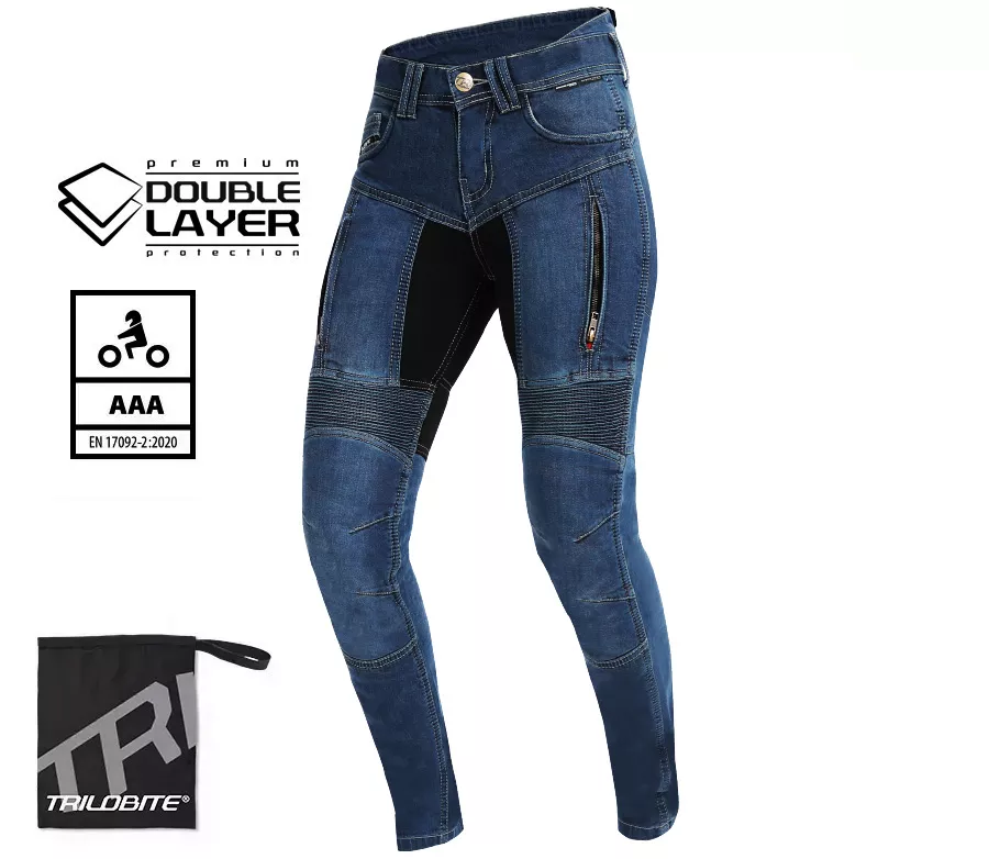 Další člen rodiny Parado, který nyní neobsahuje kevlarovou vrstvu. Parado Doublelayer AAA džíny jsou podšity novým materiálem Tri-Stretcher® PRO 5.0 Denim na strategických místech – kolena, boky a zadek. Tento materiál sám v jedné vrstvě splňuje nejpřísnější certifikační požadavky třídy AAA. Tímto spojením vznikly džíny, které jsou na vrcholu bezpečnosti, co se týče otěruvzdornosti. - Svrchní materiál: elastický denim 11,5 oz, 98 % bavlna, 2 % elastan - Podšité Tri-Stretcher® PRO 5.0 Denim na strategických místech - CE level 2 chrániče kolen a boků součástí - Kolenní chrániče je možné posouvat do stran a na potřebnou výšku. - 2 přední, 2 zadní - zapínání na 2 knoflíky a zip - ventilační kapsy na stehnech - prodyšný streč v oblasti sedu - originální YKK kovové zipy na poklopci a na ventilačních kapsách - kovový knoflík s logem Trilobite v pase - vpředu dvojitá poutka na pásek - v bederní oblasti zvýšený pas pro maximální komfort při jízdě - zvýšená zadní část pasu pro komfort při jízdě - CE Certifikováno dle EN 17092-2:2020, třída AAA - dostupné v pánském a dámském střihu a v několika barvách Vlastnosti materiálu Tri-Stretcher® PRO 5.0 Denim Základní myšlenkou bylo vyvinout tkaninu, která bude vynikat pohodlím, bezpečností a zároveň splní náročné požadavky na střih, opotřebení, roztržení, otěruvzdornost a chemickou odolnost finálního výrobku při CE Certifikačních testech. Tri-Stretcher® PRO 5.0 Denim je speciální směsí Aramidu, Nylonu, Polyesteru, bavlny a Elastanu patentovaná společností Bikers Crown s.r.o., která je výhradním vlastníkem a materiálu a zároveň designérem motocyklových džínů Trilobite. Díky nedávným průlomům v oblasti syntetických vláken mohou být džíny pro jízdu na motocyklu lehčí než kdykoliv předtím. Nová generace syntetických a polyethylenových vláken umožňuje smíchat Polyester, Nylon, Elastan a další příze, například i přírodní, do zcela nové, sofistikované tkaniny pro výrobu motocyklových džínů Trilobite. Tri-Stretcher® PRO 5.0 Denim je moderní technická tkanina, která je budoucností jízdy na motocyklu. Vyrábí se ze směsi materiálů z rodiny polyamidů jako je Nylon a aromatických polyamidů, jako je Aramid nebo polyuretanová vlákna vyrobená z Elastanu, a zároveň zahrnuje přírodní bavlněnou tkaninu. Tato látka je jedinečná svou úžasnou pevností a zároveň nízkou hmotností. Tri-Stretcher® PRO 5.0 Denim je jeden „chytrý tým“ různých vláken spletených dohromady, které vás v případě nehody ochrání stejným způsobem jako celokožená kombinéza, ale bez kompromisu na pohodlí. Značka TRILOBITE® nabízí svým zákazníkům možnost využití tzv. TRILOBITE® Crash programu. Každý jezdec, který je účastníkem dopravní nehody a nosí motocyklové jeans TRILOBITE®, které během nehody poškodí, automaticky získá zcela nové produkty. Tento program funguje tak, že svou nehodu popíšete, zdokumentujete a pošlete informace na centrálu spolu s poškozenými kalhotami. Výrobce TRILOBITE® vše zanalyzuje a poznatky použije při vývoji dalších výrobků. V případě splnění podmínek vám zašle zcela nový kus.