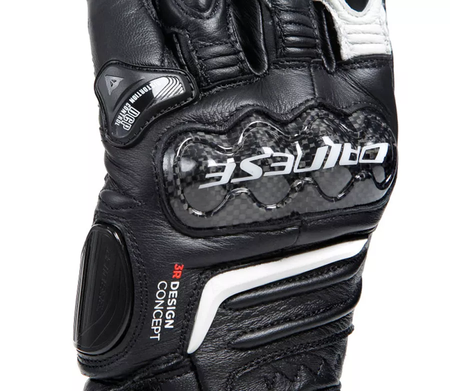 Vysoká citlivost a ochrana, pro maximální sebedůvěru při každé zatáčce. Rukavice vytvořené pro potřeby řidiče a to při dodržení nejvyšších bezpečnostních standardů značky Dainese. Vlastnosti - Podpora větrání: perforace mezi prsty - Panely z elastické žebrované kůže u kořenů prstů (prsteníček, prostředníček, ukazováček) - Micro-elastické panely na hřbetu ruky a palci, pro lepší pohyb - Extra kožený panel na boční straně - Interiér z polyuretanu a měkkých vložek - Stahovací pásek na suchý zip - Anatomicky tvarovaná dvouvrstvá zpevněná dlaňová část, která zaručuje pevnost a cit při uchopení - Předem zakřivené prsty Bezpečnost - Certifikace EN 13594/2015 Standard Kat. II - Level 1 - Karbonové chrániče kloubů ruky - PU chrániče kloubů prstů - Funkce Distortion control proti kroucení malíčku - Zpevněná malíková hrana + termoplastický chránič zpevňující malíkovou hranu - Zpevněná dlaň kozí kůží mezi palcem a ukazováčkem - Měkké chrániče - přispívají k ochraně bez omezení pohybu a komfortu - Odolnost proti oděru Materiál - Kozí kůže - Ovčí kůže