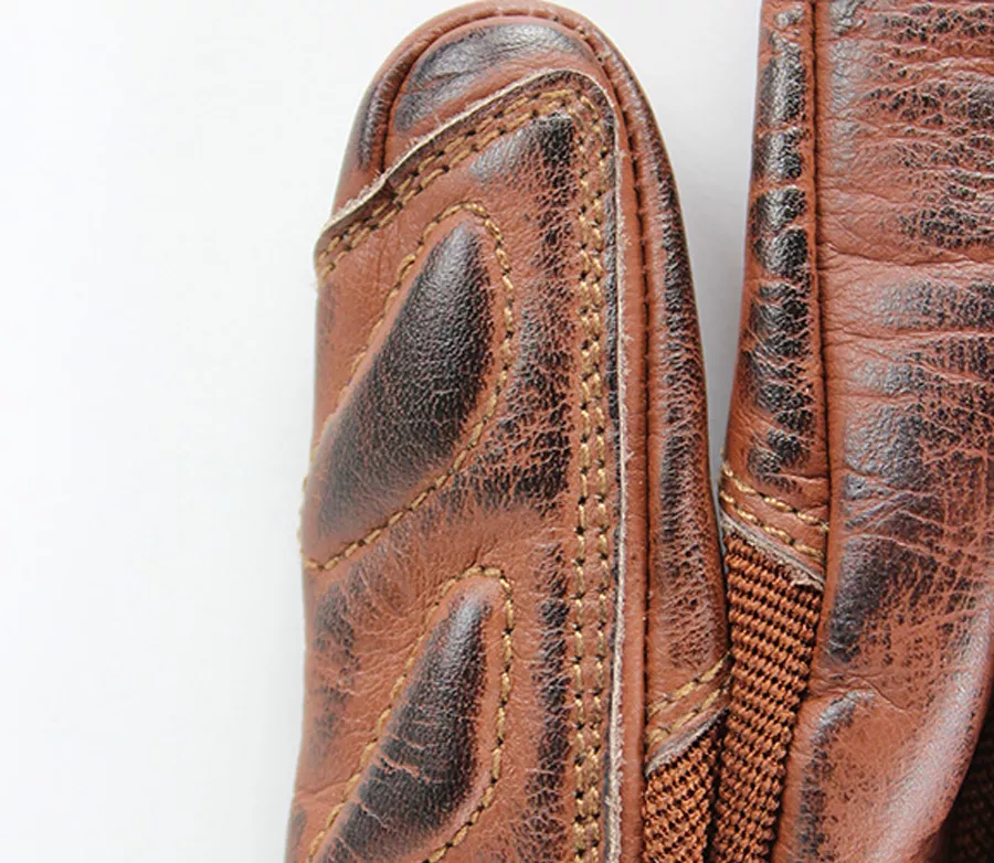 Rukavice Café jsou určeny pro ty, kteří hledají kombinaci výjimečného pohodlí, stylu a vysoké úrovně ochrany díky chrániči kloubů z termoplastu, který je napevno zasazen do kůže. Celé rukavice jsou vyrobeny z příjemné hovězí přírodní kůže nejvyšší kvality A plus, která byla použita pro svůj retro vzhled s použitím technologie voskovaného voskovým efektem. Strečové panely z kůže na palci, ukazováčku a prostředníku zajistí snadný úchop řídítek a zjednodušené ovládání brzdové páčky a páčky spojky. Spodní strana rukavic je vyztužená, aby pomohla zabránit otiskům dlaní během delších cest. Při navlékání rukavic oceníte poutko, díky kterému rukavice snadno nasadíte na ruku. • Vnější materiál: certifikovaná hovězí kůže nejvyšší kvality (A plus) Ochrana: • chránič kloubů z termoplastu • Podšívka: Super silná aramidová podšívka pro ochranu proti oděru • Extra vrstvy hovězí kůže Ergonomie a pohodlí: • Předtvarované prsty • Strečové panely na prstech • Nastavitelný pásek na suchý zip na zápěstí • Praktické poutko pro snazší nasazení rukavice Další specifikace: • retro vzhled díky povoskovaní • Dostupné v dámské verzi