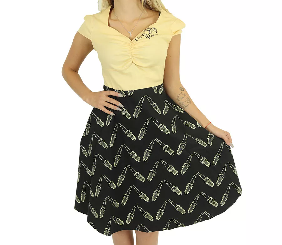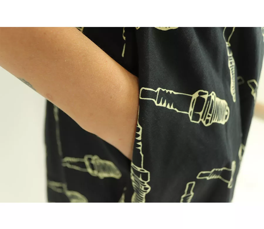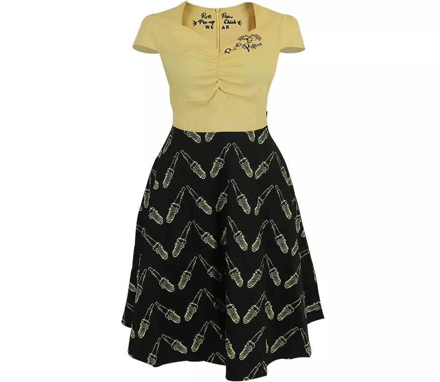 - stylové letní šaty - autentický design z dílny Rusty Pistons s potiskem - zapínání zezadu na skrytý zip - krátké rukávky, které zakrývají ramena - řasený výstřih - střih lichotící ženským tvarům - kolová sukně v délce cca po kolena (záleží na výšce postavy) - na bocích kapsy - materiál 95% bavlna / 5% spandex