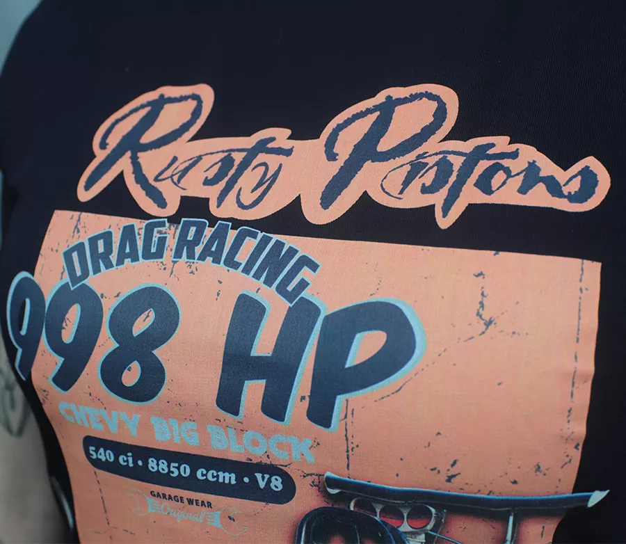- 100% bavlna - kulatý výstřih - krátký rukáv - Rusty Pistons stylové potisky