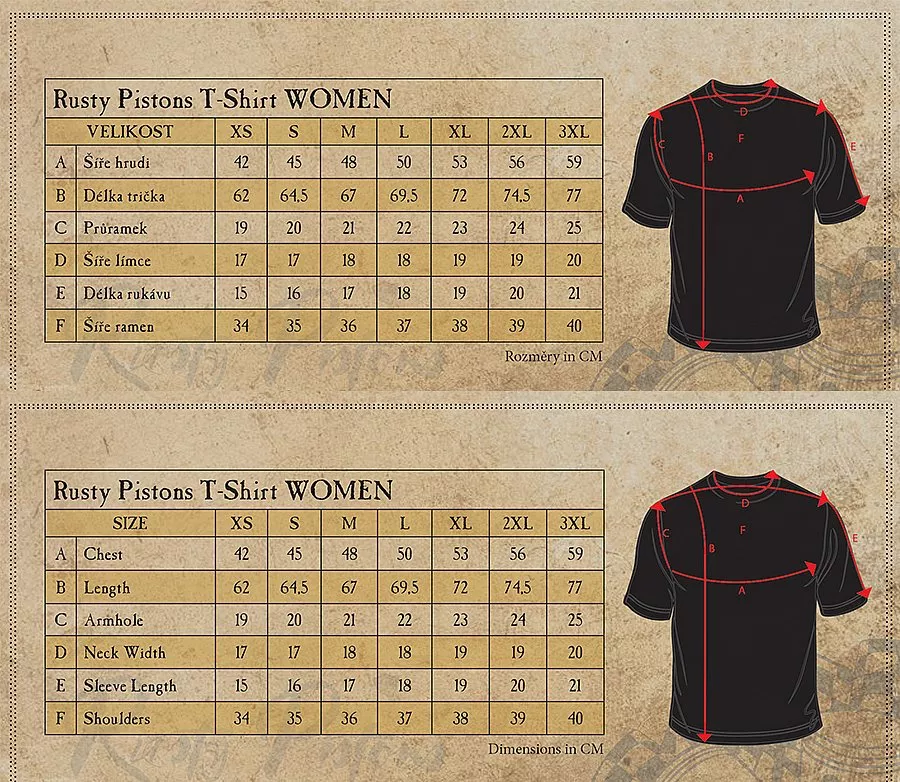 Kvalitně zpracované stylové tričko s originálním designem. - módní zúžený střih - složení 100% výběrová bavlna - velký potisk na hrudi - 3D kulaté logo Rusty Pistons na zádech - kulatý žebrovaný výstřih - dvojité švy na koncích rukávu a spodním lemu - vystužená semišová jemná páska za krkem s logem Rusty Pistons - bez nepříjemného štítku za krkem - Rusty Pistons logo nášivka na bočním švu