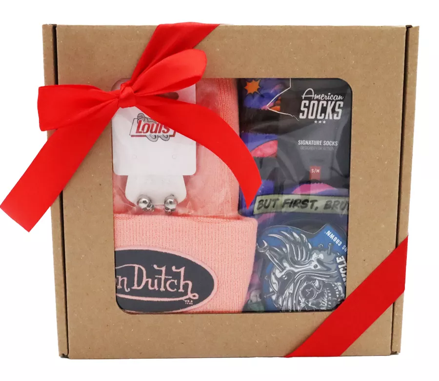 Nevíte, co darovat ? Máme pro vás ideální řešení – jedinečný balíček plný stylových dárků! Vše je krásně zabalené v dárkové krabici, připravené pro vaši polovičku. V balíčku naleznete:Von Dutch Bonnet dámská čepicePonožky American Socks BrunchSKULL náušnice • Bikers Crown Motorcycle shop - magnet Balíček, který potěší každého milovníka motorek a dobrého stylu!