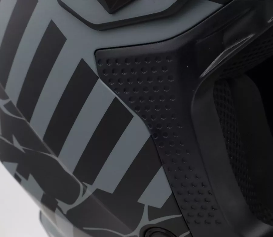 Dětská motokrosová helma s lehkou polykarbonátovou skořepinou a aerodynamickým tvarem pro stabilitu při jízdě. Díky jedné velikosti skořepiny a dvěma variantám EPS výplní se dobře přizpůsobí hlavě dítěte a zajistí potřebnou úroveň ochrany. Nízká hmotnost přispívá k pohodlí i při delším nošení. Helma splňuje homologaci ECE 22-06. Bezpečí • Polykarbonátová skořepina • Aerodynamický tvar • Jedna velikost skořepiny • Dvě velikosti EPS výplní • Homologace ECE 22-06 Pohodlí • Dětská velikost • Jemná vnitřní výstelka • Vyjímatelná a pratelná výstelka • Nízká hmotnost cca 1100 ± 50 g Zapínání • Pásek s mikrometrickou přezkou