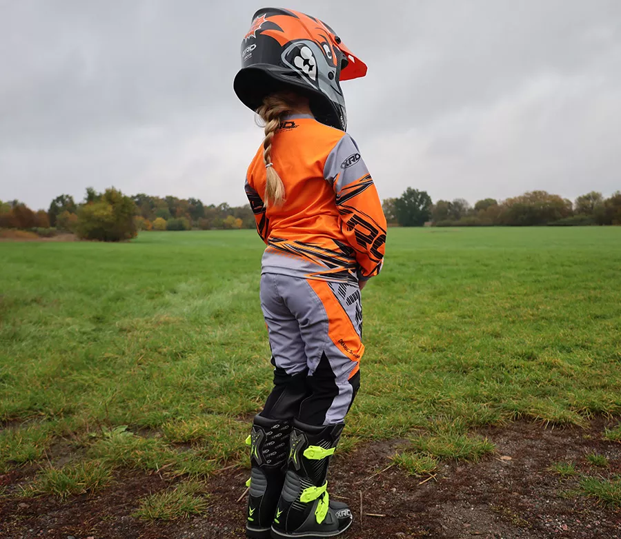 Dětské MX kalhoty kombinují odolné materiály s pružnými zónami pro maximální volnost pohybu při jízdě i tréninku. Střih je přizpůsoben dětské postavě tak, aby dobře seděl a neomezoval v pohybu. Materiál Odolný polyester Maxtex 300D (85 %) doplněný o strečové části (10 %) pro lepší flexibilitu a kožené prvky (5 %) v namáhaných místech. Komfort a pohyb Pružné části v rozkroku, v oblasti kolen a v zadní části pasu podporují přirozený pohyb na motorce. Nastavení pasu a přezka v pase umožňují přesné dotažení podle potřeby. Vlastnosti • 85 % polyester Maxtex 300D • 10 % strečové části • 5 % kůže v namáhaných místech • pružné zóny v rozkroku, na kolenou a v zadní části pasu • nastavení pasu • zapínání na přezku • odolný potisk
