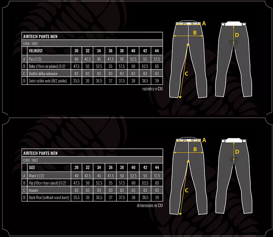 Trilobite Airtech kalhoty vyrobeny pro jezdce, kteří hledají maximální ochranu při jízdě na motocyklu, od silničního cestování až po ryzí enduro. Díky kombinaci džínoviny, strečového materiálu, síťoviny, kůže a oděruvzdorné podšívky v sedu a na kolenou, která je vyrobena z aramidových vláken Kevlar® od výrobce DuPont ™, jsou AirTech kalhoty správnou volbou. Dokonalé odvětrání skvěle funguje díky technologii Air Tech ze síťoviny na bocích a stehnech. Kalhoty jsou dodávány včetně kšand s logy Trilobite, které jsou ke kalhotám připnut na dvojitá poutka v zadní a přední části s velkým suchým zipem pro maximální pohodlí při jejich manipulaci. Všichni motocykloví jezdci ocení pohodlí, které zajistí strečový a prodyšného materiál v rozkroku a vyvýšení pas. Kolenní chrániče Trilobite® jsou součástí kalhot. Volitelně je lze vybavit chrániči boků. Použité YKK zipy podtrhují celkovou kvalitu kalhot. Kalhoty mají designovou kombinaci tmavě modré džínoviny a hnědé ručně voskované kůže, která má velmi výrazný vzhled. K dispozici jsou také ve verzi pro všechny motorkářky. - Vnější materiál: džínovina, síťovina, kůže - Ochrana: aramidová vlákna Kevlar® od firmy DuPont ™ v sedu a na kolenech - Chrániče SAS-TEC CE Level 2 Straight fit (rovný střih) Ergonomické vlastnosti: - Nastavitelná šířka pasu pomocí streče a pásku na suchý zip, - Boční zipy v dolní části nohavic, - Tři vnější kapsy - Nastavitelná výška chráničů kolen pomocí suchého zipu - Vyvýšený pas - Odnímatelné šle Ventilace: - Rozsáhlé panely ze síťoviny, které zajistí dokonalý přísun vzduchu - Barevné varianty: modro-černá Na co se hodí? Sport-touring, enduro, adventure. Dostupné v pánských velikostech (30-44), a dámských (26-36). Kevlar® a DuPont ™ jsou ochranné známky nebo registrované ochranné známky společnosti E.I. du Pont de Nemours and Company.