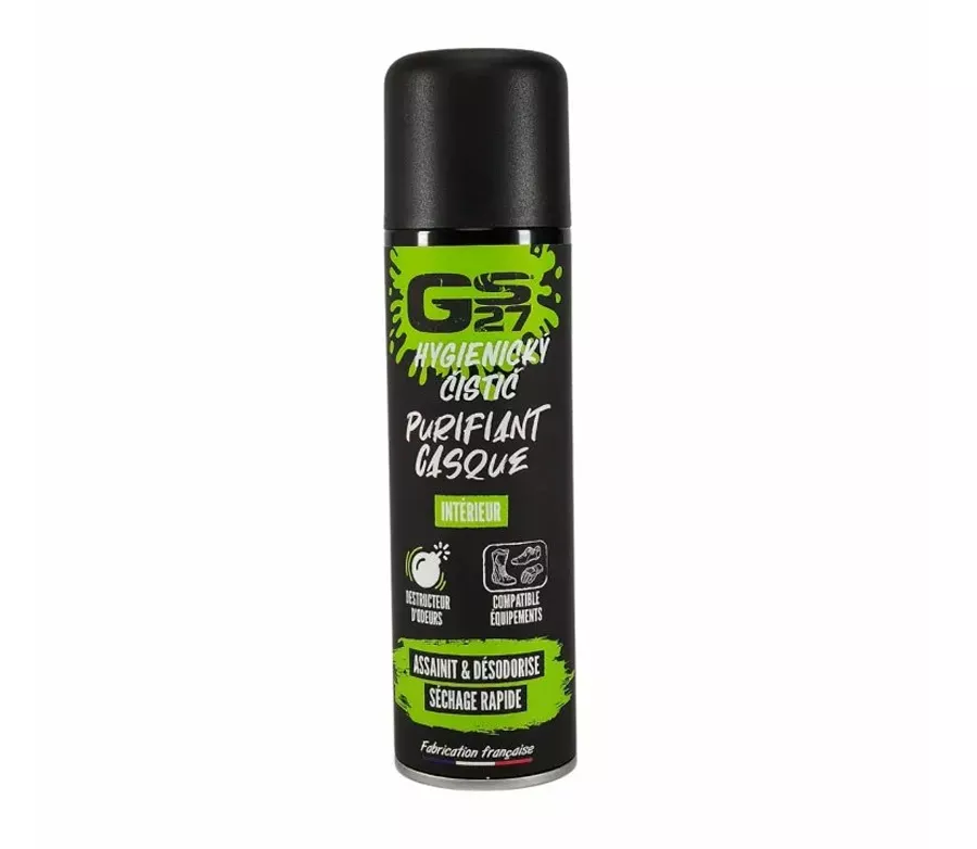 GS27 PURIFIANT CASQUE - tento hygienický čistič se skvěle hodí na ošetření všech druhů obuvi a rukavic a sportovního vybavení. - Odstraňuje zápach jakéhokoli původu. - Působí okamžitě. - Je rychleschnoucí. - Příjemná mátová vůně. - Napomáhá rychlému vyschnutí obuvi. - Účinnost testována.