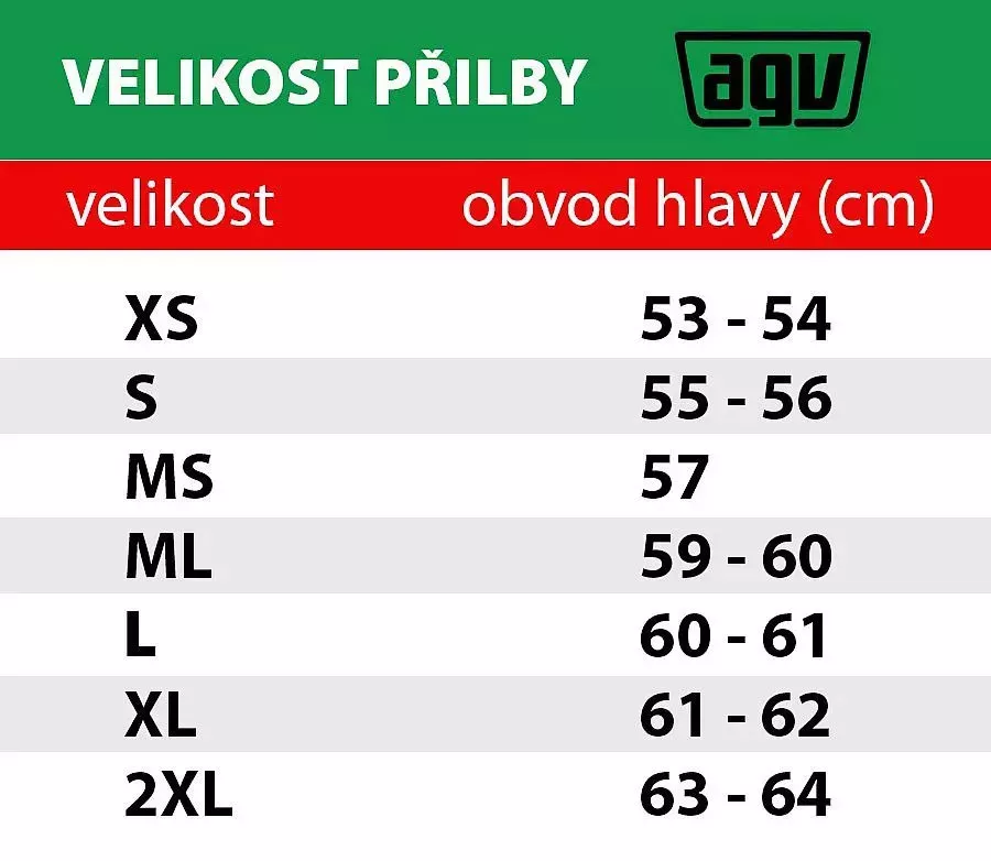 Skořepina: - laminátová skořepina CAF (karbon - laminát) - přilba je vyráběna ve 2 velikostech skořepiny - zapínání dvojitým "D-kroužkem" - splňuje homologaci ECE 22-05 - hmotnost přilby 1390 g (+/- 50 g) Větrání: - integrovaný komfortní větrací systém: - čelní a bradové větrání pro přívod čerstvého vzduchu do přilby - zadní výstupy pro odvod vzduchu z přilby - mikroventilace plexi - vyjímatelný nosní deflektor a nový bradový deflektor - integrovaný spoiler pro maxilmální aerodynamiku Plexi (hledí): - tvarově inovované plexi (třída 1) s UV filtrem, připravené pro MAX VISION Pinlock® 70 (MPLK) a ochranou proti poškrábání - clona Pinlock® 100% MAX VISION 70 proti zamlžení je součástí přilby - plexi typ GT4-1 MPLK → pro velikosti XS - S - MS - plexi typ GT4-2 MPLK → pro velikosti ML - L - XL - XXL - přilba standardně dodávána s čirým plexi - možnost dokoupení plexi v barevných odstínech - jednoduchá výměna plexi bez použití nástrojů - vnitřní sluneční clona s ochranou proti poškrábání - možnost dokoupení sluneční clony v barevných odstínech Interiér: - ploché švy pro maximální pohodlí - vyjímatelné lícnice Ritmo® v kombinaci s materiálem Sanitized®, 2Dry® a Microsence® - vyjímatelný interiér Shalimar® v kombinaci s materiálem Sanitized®, 2Dry® a Microsence® - límec přilby s úpravou proti vodě - reflexní prvek na límci pro zvýšení viditelnosti při jízdě v nepříznivých pomínkách (dešť, mlha, ...) Komunikace: -připraveno pro montáž komunikace AGV ARK (komunikační zařízení SENA speciálně vyvinuté a tvarované pouze pro přilby AGV)