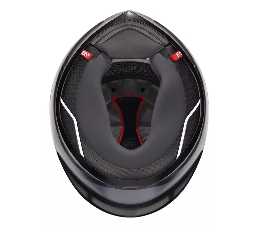 Skořepina: - 4 velikosti skořepiny - 5-hustotní EPS vložka ve 4 velikostech - Karbon-Aramidové vlákno - profil chránící klíční kost v případě nárazu - váha 1255g pro nejmenší velikost - homologováno dle ECE 22-06 Ventilace: - 1 široký zadní výduch - 5 předních ventilačních vstupů - možnost úpravy nastavení ventilace Aerodynamika: - integrovaný spoiler - optimální pro všechny jízdní polohy - tvar skořepiny je navržený tak, aby snižoval turbulenci Interiér: - 2Dry technologie pro absorbování potu - Safety release system na lícnicích - látka Ritmo zajišťuje pohodlné nasazování / sundavání helmy - látka Shalimar je stabilní a měkká, při jízdě se nesmeká - korunka z látky Shalimar je příjemná na dotek - přiléhavý profil krku - ve výstelce je místo pro zasunutí nožiček brýlí - výstelka z prémiové příjemné látky - látka u krku je z prodyšného elastického materiálu s příměsí odolné proti vodě - výstelka je z antibakteriálního materiálu - připraveno pro použití AGV ARK komunikátoru - reflexní prvky - odnímatelná a pratelná výstelka - odnímatelný nosní deflektor - zapínání na přezku s titanovými DD kroužky Plexi: - 100% Max Vision Pinlock (120) je součástí balení - 190° horizontální zorné pole - 85° vertikální zorné pole - plexi s úpravou proti poškrábání - kovový mechanismus plexi - vícepolohový mechanismus plexi - optická třída 1 - patentovaný mechanismus s extra rychloupínacím systémem - patentovaný systém uzamknutí plexi Obsah balení: - zarážka proti větru - Pinlock