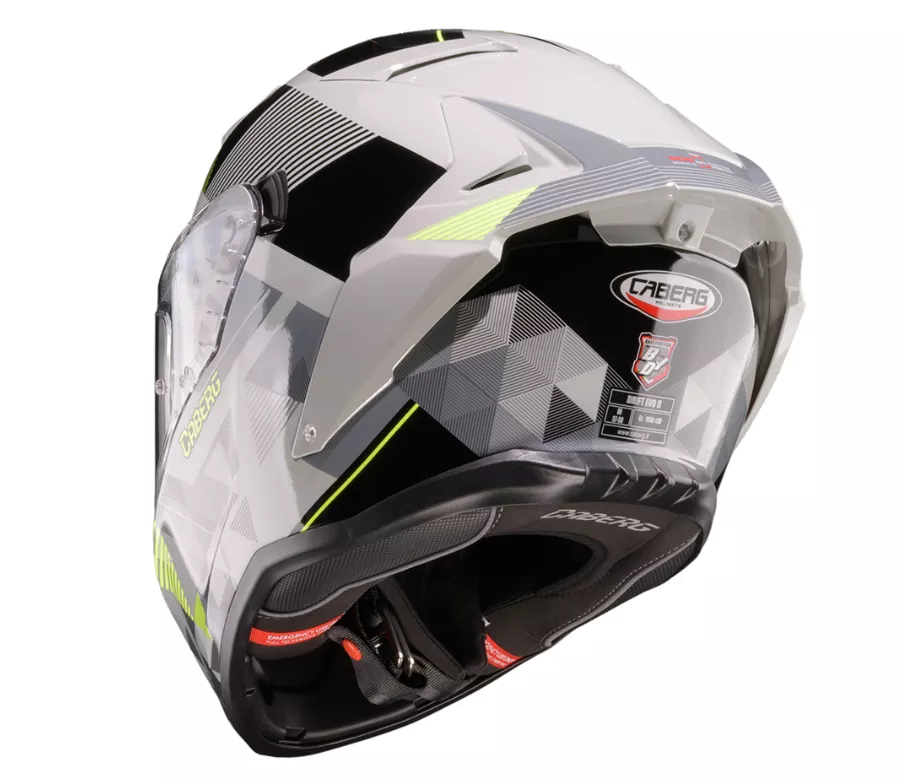 Caberg DRIFT EVO II je nová špičková integrální přilba z fiberglass materiálu v moderním sportovním designu, vyvinutá pro nejnáročnější jezdce! Je vybavena sluneční clonou, čirým plexi ošetřeným proti poškrábání a nastavitelným Pinlock Max Vision 70 s úpravou proti zamlžování. Tato skvělá helma nabízí systém centrálního zamykání hledí a tlačítko pro otevření, které umožňuje zastavit hledí a nechat minimální otvor, aby se zabránilo zamlžování plexi. Cirkulaci vzduchu v přilbě Caberg DRIFT EVO II zajišťují dva větrací otvory na bradě, které vedou vzduch přímo na vnitřní stranu hledí. 2 větrací otvory v horní části, které vedou čerstvý vzduch dovnitř přilby a 4 zadní, které podporují odvod horkého a vydýchaného vzduchu... Jako výhradní dovozci helem Caberg do ČR i Slovenska jsme rádi, že vám tuto skvělou skořepinu můžeme nabídnout i u nás. Vnější skořepina se vyrábí ve dvou velikostech (malá od XS do M, velká od L do XXL). Lícnice jsou vybaveny rychloupínacím systémem, který umožňuje snadné a bezpečné sejmutí i v případě nouze, když je přilba stále nasazená. A to pouhým zatažením za červené pásky. Lícnice jsou navíc ergonomicky tvarované tak, aby umožňovaly nasazení brýlí. Systém zapínání bradového pásku je vybaven dvojitým D kroužkem. Integrálka Caberg DRIFT EVO II je připravena pro komunikační systémem Caberg Pro Speak Evo. Pro zajištění maximální bezpečnosti prošla tato helma všemi testy ECE 22.06 i s nainstalovaným systémem Caberg Pro Speak EVO. Caberg DRIFT EVO II je vybavena systémem CABERG SOS MEDICAL ID, do kterého lze uložit osobní údaje, zdravotní záznamy a kontakty pro případ nouze. Pokud jste zraněni nebo jste měli nehodu a potřebujete pohotovostní péči, tak díky technologii NFC mohou záchranáři za pomoci chytrého telefonu rychle získat potřebné infomrace, které jsou uložené na logu CABERG SOS MEDICAL ID. Vaše kontakty mohou být v případě nehody rovněž informovány o vaší poloze prostřednictvím SMS. Aplikace CABERG SOS MEDICAL ID je dostupná i v českém jazyce. Po zakoupení přilby Caberg vybavené štítkem CABERG SOS MEDICAL ID umístěte svůj chytrý telefon do blízkosti středu nálepky CABERG SOS MEDICAL ID na spoileru. Připojte se a přihlaste se. Obdržíte oznámení NFC a kliknutím na odkaz budete přesměrováni na stránku caberg.feisecure.com.