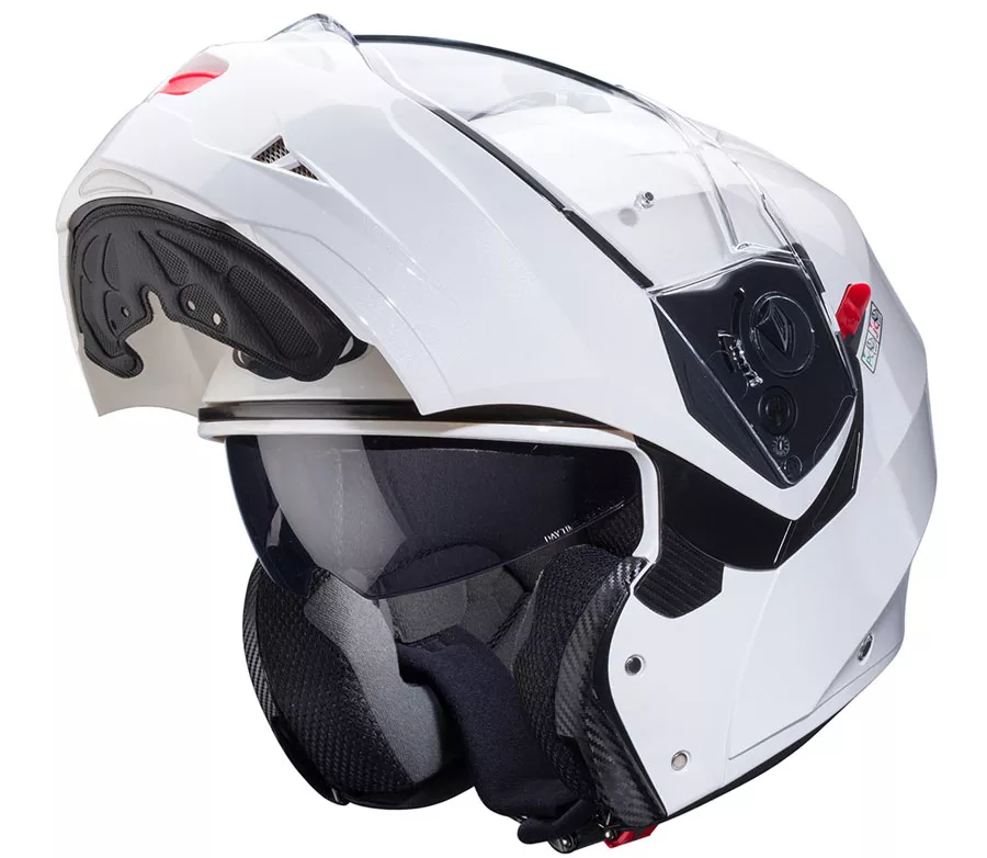 - P/J duální homologace pro otevřenou i integrální helmu garantující bezpečnou jízdu se zajištěnou otevřenou bradovou částí - díky P/J páčce na levé straně helmy lze pozici otevřené bradové části zamknout (pozice "J") a tím blokovat možnost jejího samovolného zavření za jízdy