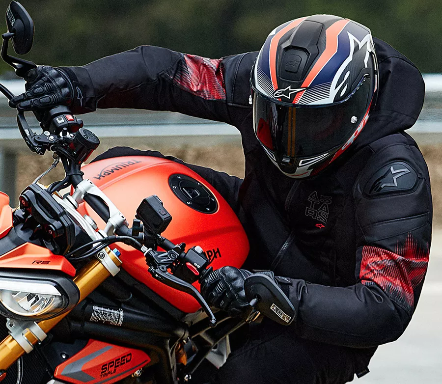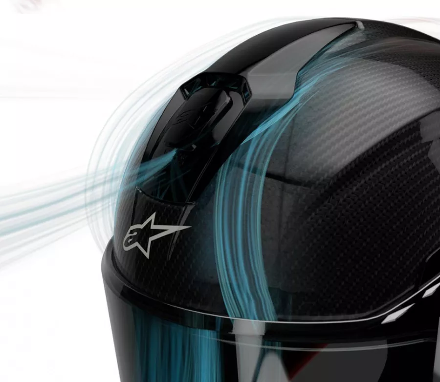 - Silueta racing spoileru perfektně navazuje na aerodynamické hrby racing kombinéz ALPINESTARS.