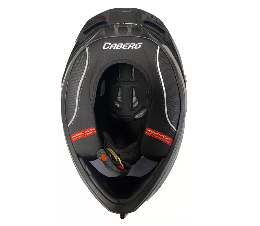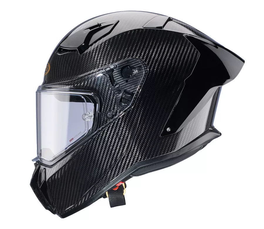 P01 Carbon – závodní integrální přilba Bezpečnost a homologace • Lehká skořepina z karbonu a sklolaminátu (cca 1350 g ± 50 g) • Homologace ECE 22.06 pro silniční provoz • FIM Level 2 (ve velikostech M a L) – schválená pro závodní použití Výhody pro jezdce • Aerodynamický tvar testovaný v aerodynamickém tunelu • Velký zadní spoiler pro stabilitu ve vyšších rychlostech • Efektivní ventilace: 2 horní a 2 bradové vstupy, 4 zadní výdechy • Plexi s přípravou pro Tear-Off fólie, odolné proti poškrábání • Pinlock® Max Vision 120 součástí balení – proti zamlžení • Dvojité zapínání D-kroužky z hliníku pro maximální bezpečnost Komfort a praktičnost • Vyjímatelný, pratelný a hypoalergenní interiér • Ergonomicky tvarované lícnice vhodné pro brýle • Nouzový systém EZ Q.R.S. pro rychlé sejmutí lícnic • Integrovaný NFC čip – Caberg SOS Medical ID pro rychlý přístup záchranářů k důležitým údajům • Připraveno pro interkom Caberg Pro Speak Evo (hudba, navigace, komunikace) Další výbava • Rychloupínací systém plexi • Odnímatelný nosní deflektor • V balení: čiré a tmavé plexi, Pinlock, sáček na helmu a náhradní samolepky