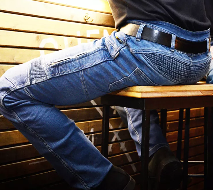 Pánské motocyklové jeans s kevlarem a chrániči ve střihu SLIM