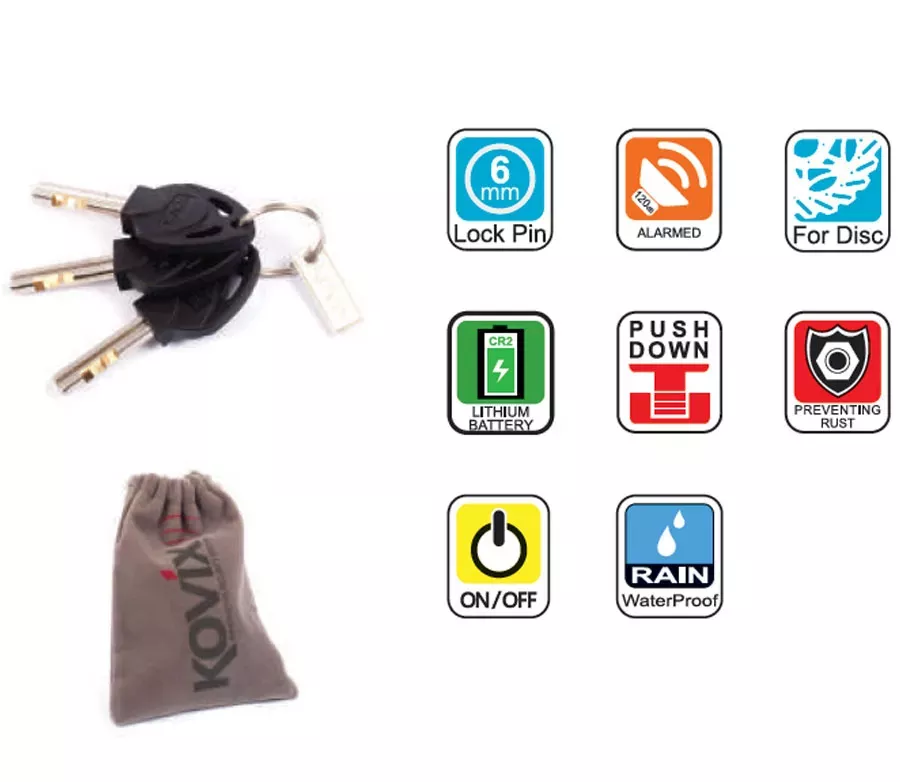 - kotoučový zámek s alarmem - 120dB siréna - alarmový modul chráněný slitinou zinku - vodotěsný modul alarmu - lithiová baterie s dlouhou životností - výběr funkce alarmu - čep zámku z nerezové oceli - push-down zamykací systém - 100% odolný proti korozi - vysoce kvalitní odlitek - triaxiální pohybové čidlo - válcový vysoce bezpečnostní klíč