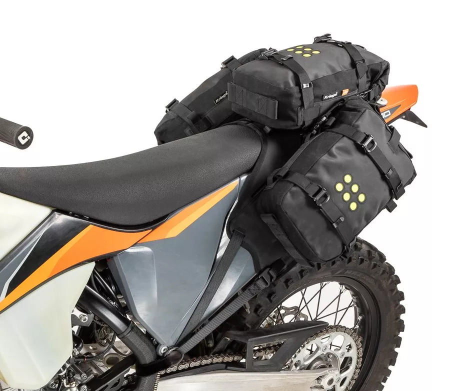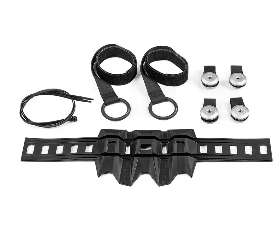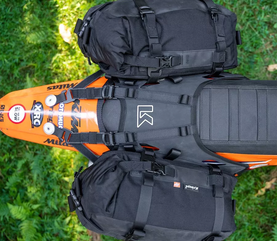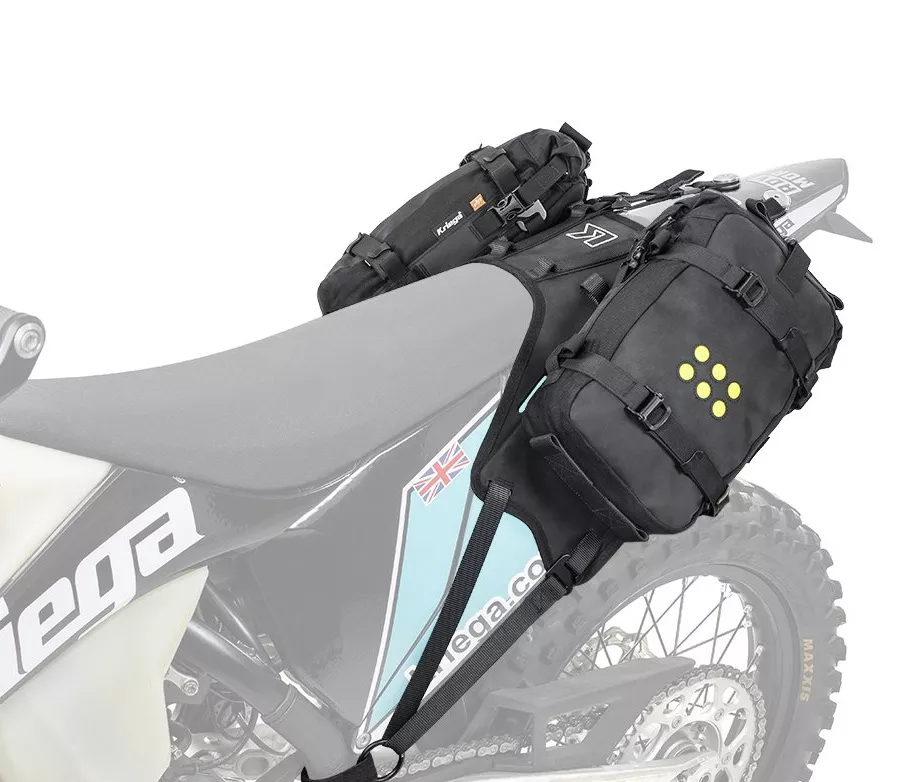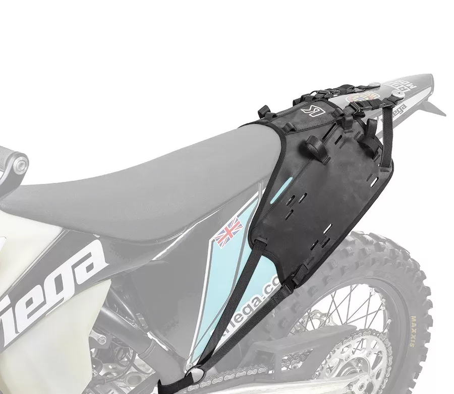 OS-BASE DIRTBIKE – univerzální základna pro lehké enduro motocykly Navrženo tak, aby dokonale sedělo na nejnovější enduro motocykly – díky přesnému tvaru a specifickému montážnímu příslušenství. OS-BASE DIRTBIKE je systém „přes sedlo“ pro uchycení zavazadel OS-6, OS-12 nebo OS-18 ADVENTURE PACK – bez nutnosti použití kovových nosičů nebo rámů. Tento systém nabízí extrémně odolné a zároveň lehké řešení pro převoz výbavy, přičemž vyžaduje jen minimální úpravy na motorce. Díky chytrému uchycení si můžete vybrat mezi konfigurací s jedním, dvěma nebo třemi zavazadly podle potřeby. Přednastavené délky popruhů zajišťují rychlou a snadnou instalaci, zatímco speciální tvar základny poskytuje pevné a stabilní uchycení – navíc s dostatečným odstupem od výfuku. Montáž trvá méně než minutu a sundání je otázkou vteřin. SOUČÁSTÍ BALENÍ JE MONTÁŽNÍ PŘÍSLUŠENSTVÍ: 2× OS-DIRTBIKE RINGS – upevňují se k hlavnímu rámu motorky poblíž stupaček. Lze je ponechat na motorce i při demontovaném OS-BASE. Slouží jako jednoduchý bod pro uchycení předních popruhů. 4× OS-RACK LOOPS – slouží jako upevňovací body pro samostatné OS-PACK nebo US-Drypack. V kombinaci s přídavnými oky na OS-BASE umožňují různé konfigurace uchycení až tří zavazadel. Zadní dvojice slouží jako bezpečný bod pro zadní popruhy. 1× SILIKONOVÝ TEPELNÝ ŠTÍT – chrání brašny před sálajícím teplem z výfuku. Jednoduše se upevňuje na tlumič pomocí dvou přiložených stahovacích pásek.