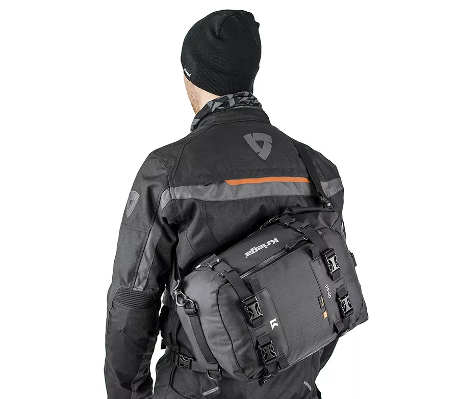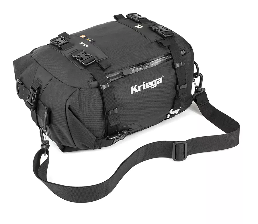 Pohodlné nošení díky odnímatelnému ramennímu popruhu (US-20 / US-30) nebo díky možnosti připevnění na Kriega batohy (US-5 / US-10) 100% voděodolné, univerzální pro připevnění na zadní část motorky nebo jako tank bag na nádrž. Inovativní 100% voděodolný vak s objemem 30 litrů na každý motocykl. Může být použit samostatně nebo v kombinaci s ostatními zavazadly k vytvoření modulárního zavazadlového systému až do 70 litrů kapacity. Snadná montáž s rychloupínacími háky k rámu motocyklu Nejsou potřeba žádné další lana a voděodolné kryty Batoh může být použit také jako tank bag na nádrž s použitím Kriega TANK konventorem.