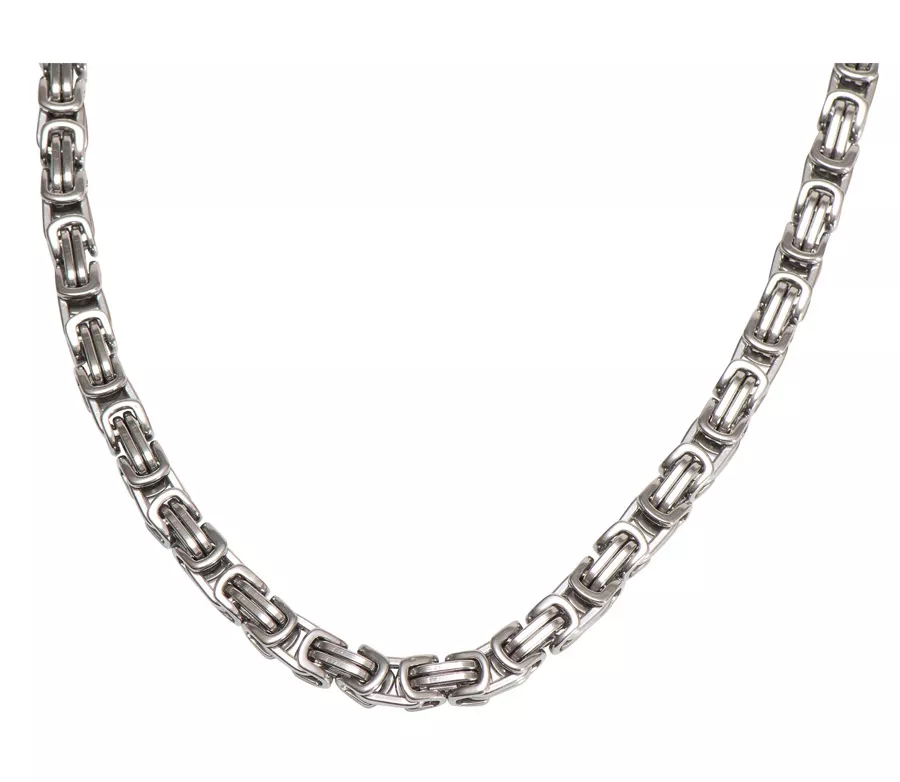 Náhrdelník ve *stylu královského řetězu* hýčká naše oči téměř královským leskem. Tento šperk je velmi kvalitně zpracován a je vyroben z leštěné chirurgické oceli 316L. - Celková délka cca 60 cm (náhrdelník lze zkrátit u šperkaře, resp. při použití speciálního nástroje) - Kovové zapínání - Hmotnost: 114 g - Ušlechtilá ocel 316L nejvýkonnější a korozivzdorné oceli patří do řady 300 a jsou proto velmi oblíbené nejen v kvalitní hodinářské výrobě, ale také v lékařských implantátech a tělových špercích. chirurgická ocel 316L (antialergická) vyniká především v segmentu nejvyšší kvality.