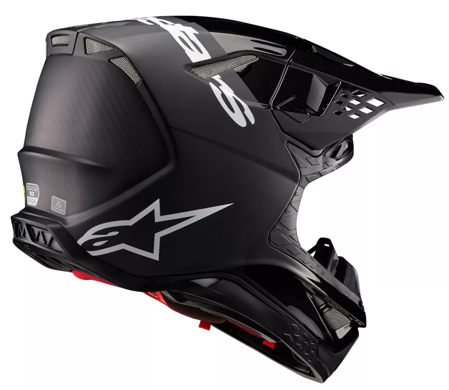 Motokrosová přilba Supertech M10 je výsledkem více než 5-ti letého vývoje, přípravy a testování produktu s cílem nabídnout co nejbezpečnější ochrannou, terenní přilbu s velkým množstvím detailů, které napomáhají komfortu, perfektní ventilaci a optimální hmotnosti produktu. Přilba SM 10 je první produkt testovaný a vyvinutý v novém vývojovém centru Alpinestars specializovaném na sortiment přileb Konstrukce - více kompozitní skořepina s vnější vrstvou z 3K výběrového karbonu - jednotlivé 3 vrstvy materiálů skořepiny díky vícekompozitní konstrukci plní konkrétní roli při přenosu a roznesení rázových sil do vnitřního jádra z EPS polysterenu - střední vrstva skořepiny z kompozitní aramidové textilie plní funci ochrany proti proražení skořepiny - skořepina přesahuje hodnoty požadované dle parametrů z testování standardy pro homologace ECE a DOT a splňuje hodnoty pro připravovaná pravidla pro závody spadající pod organizaci FIM - dostupné ve 4 různých velikostech skořepiny - vnitřní jádro z EPS polysterenu je složeno z více dílů. Každý z dílů má různou pevnost a hustotu materiálu. Dle těchto vlastností je v přilbě cíleně umístěn na konkrétním místě Bezpečnost - snížený profil přilby a měkčí lem v bočních partiích zvyšuje prevenci ochrany klíční kosti - tvar spodní části je kompatibilní s protektory krční páteře BNS - MIPS systém pro prevenci poranění mozku součástí interieru přilby - lícnice s rychloodepínacím systémem ERS - přilba je CE certifikovaná Systém donastavení interieru přilby A-HEAD - systém A-HEAD je součást interieru přilby a slouží k co nejlepšímu individuálnímu donastavení vniřní části a donastavení pozice přilby na hlavě - díky třem pozicím nastavení vrchní části výstelky přilby dosahnete nastavení pozice na hlavě a přesnějšího obepnutí horní části lebky - nezávislá pozice a prostor mezi nastavitelnou částí a EPS jádrem dovoluje lepší ventilaci ve vrchní části interieru přilby - systém vnitřního nastavení nahrazuje konvenční, vnější nastavení pozice kšiltu, který je díky dostupnosti A-HEAD nenastavitelný s patentovaným mechanismem rychloodepínání kšiltu v případě pádu na kšilt - lícnice interieru disponují bezpečnostním systémem rychloodepínání lícnic ERS system a přípravou pro systém EJECT(sundání přilby z hlavy pomocí balonku plněného vzduchem, který se používá při závodech amerického motokrosu) Hlavní přednosti produktu - ventilace a interier přilby jsou výsledkem testování teplotních map přilby, díky kterému byl přizpůsobený tvar, počet a pozice ventilačních otvorů s návazností na prodyšný interier a ostatní části přilby - aerodynamicky optimalizovaný kšilt s patentovaným systémem rychlo odepnutí kšiltu v případě pádu komfortní interier se systémem A-HEAD navazující na funční ventilační soustavu přilby - plně odnímatelná výstelka s textilními panely s příměsí vláken Coolmax (napomáhá lepší prodyšnosti, rychlému schnutí a odvodu potu) a antibakteriálních vláken Talent Yarn - řemínek zapínání širší než požadují certifikační normy, 26mm šířky řemínku pro lepší komfort. Vyrobeného z polyesteru šetrného při kontaktu s pokožkou v oblasti krku a zapínání pomocí dvojitých DD kroužků - velký průzor kompatibilní i s největšími typy motokrosových brýlí dostupných na trhu - příprava s prostupy pro vedení hadice hydrobagů na obou stranách pod lícnicemi interieru - odnímatelný nosní deflektor - záslepky s přípravou pro sluchátka komunikátorů - dobře omyvatelná a odolná TPE povrchová úprava finálního laku přilby - náhradní kšilt a komfortní textilní taška dostupné jako součást balíčku s produktem - lícnice s tloušťkou +5mm větší pro přesnější dopasování přilby dostupné jako doplňkové příslušenství - hmotnost přilby ±1260g pro velikost M (ve verzi s CE certifikací)