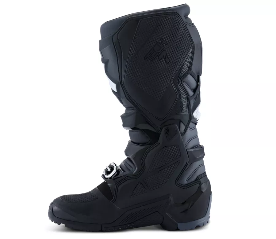 Motokrosové/enduro boty vyvinuté pro ty nejnáročnější terény. Díky speciální konstrukci podrážky, pokročilé ochraně a inovativním prvkům poskytují vysokou úroveň bezpečí, komfortu a výkonu. Klíčové vlastnosti: - Enduro podrážka se speciální dvousložkovou konstrukcí pro maximální odolnost, přilnavost a cit při ovládání motorky - Rozšířený rozsah nastavení v oblasti lýtka pro optimální přizpůsobení - Měkká zóna ohybu ve špičce pro lepší pohyblivost na motorce i mimo ni Konstrukce: - Svršek z PU vyztuženého mikrovlákna – flexibilní, odolný proti oděru, vodě i nečistotám, snadno se čistí a udržuje - Systém zapínání s polymerovými přezkami a hliníkovým rámem – odlehčený, pevný a odolný - Rychloupínací systém s přesným samonastavením pro snadné a bezpečné zapínání - Dvojitý pivotní systém pro vyšší flexibilitu a přesné ovládání - Prodloužený mikrovláknový límec proti pronikání vody a bláta Ochrana: - Rozsáhlé TPU protektory v oblasti prstů, chodidla, paty, kotníku, lýtka a holenní části - Zesílené zóny špičky a paty pro zvýšenou odolnost proti nárazům - Tvarované chrániče holeně a kotníků s vysokou odolností proti nárazům a oděru - Měkké výztuhy v oblasti kotníků pro dlouhodobý komfort a absorpci nárazů - Přední ohyb s progresivní konstrukcí a tlumicími vložkami pro maximální výkon - Vnitřní TPU panel s gripem pro lepší kontakt s motocyklem a odolnost proti teplu i oděru Certifikace: - CE certifikace dle normy EN 13634:2017