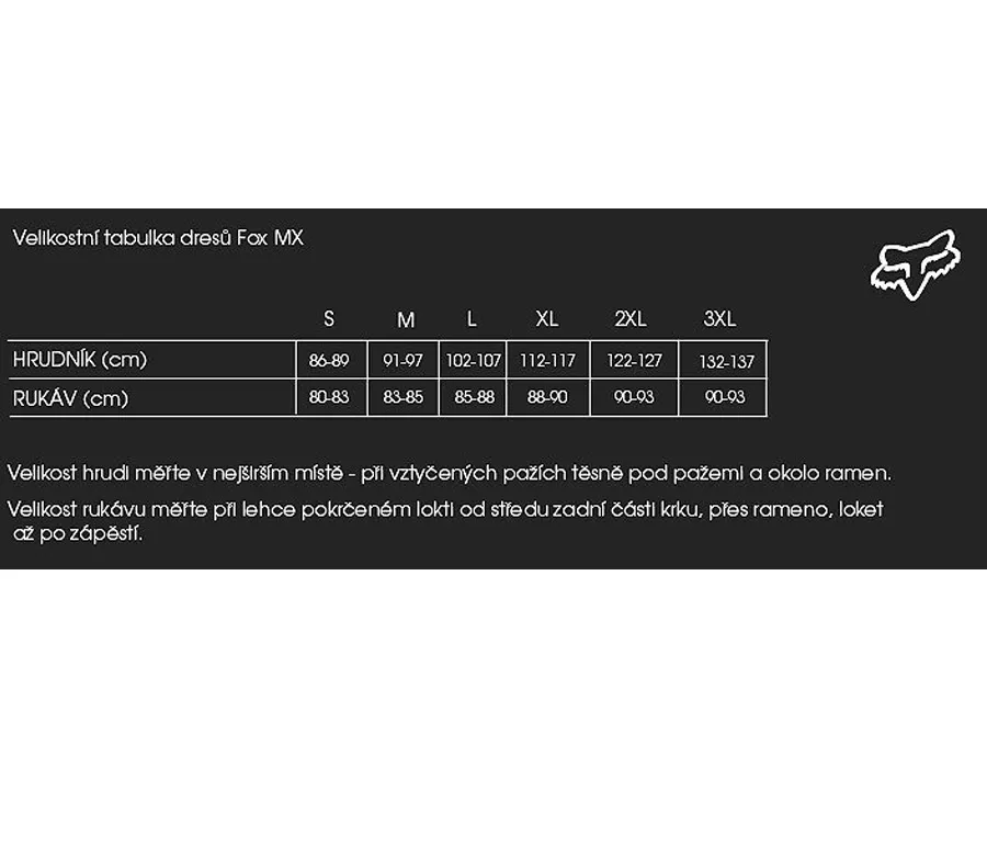 Motokrosový dres z řady 180 je vyroben ze zcela inovovaného materiálu, jímž je 100% polyester s vylepšenou funkcí odvodu vlhkosti a potu pro větší komfort při jízdě. - materiál: 100% polyester s vylepšenou funkcí odvodu vlhkosti a potu pro větší komfort při jízdě - o zvyšený tok vzduchu k tělu se starají prodyšné boční prvky - nový asymetrický střih prodyšného límce s nízkým profilem slouží k neomezenému pohybu krku a je navíc kompatibilní s většinou dostupných chráničů krku - tenké úplety na rukávech - prodloužený střih zad zjednodušuje možnost nosit dres zastrčený v kalhotech - odolný celopotisk Fox sublimační metodou nebledne na slunci