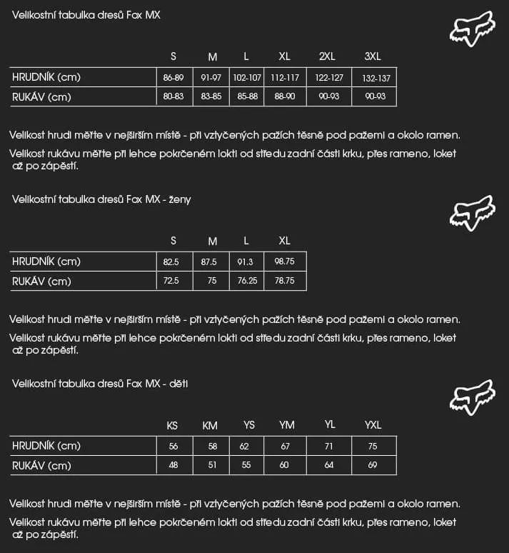 Kvalitní pánský motokrosový dres FOX - Kulatý výstřih - Lehký materiál, který skvěle padne a zároveň poskytuje úplnou volnost pohybu - Dlouhé tvarované rukávy pro lepší ergonomii na motocyklu - Límec a manžety ze síťoviny pro vyšší komfort - Perforované panely pro lepší prodyšnost - Sublimační potisk FOX - Delší zadní část dresu - Barva: modrá, černá, bílá - Materiál: 100% Polyester