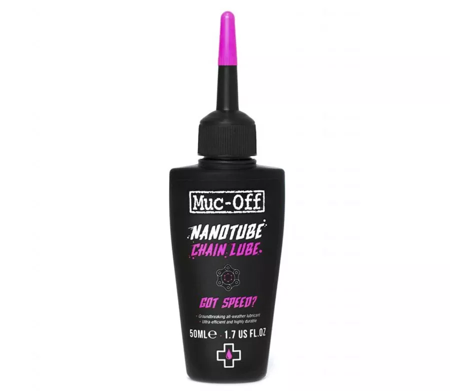 MUC-OFF NANOTUBE CHAIN LUBE je absolutní novinka v cyklistických mazivech. Mazivo MUC-OFF NANOTUBE CHAIN LUBE bylo vyvinuto pomocí špičkové technologie, intenzivního výzkumu a nejmodernějších postupů. Mazivo Vám dovolí prodloužit interval mezi jednotlivými mazáními ve všech povětrnostních podmínkách. Dále ušetří až neuvěřitelných 1-2 wattů výkonu oproti standardnímu mazání - tření řetězu se dostane na absolutní minimum.
