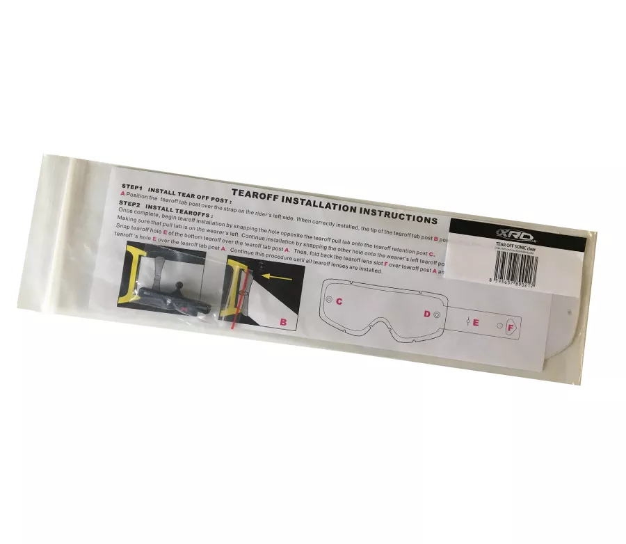 - získejte jasný výhled na trať jednoduchým stržením znečištěné pásky - pasují na model MX brýlí XRC MX Sonic - odtrhávací pásky jsou prodávány v balení po 10 kusech