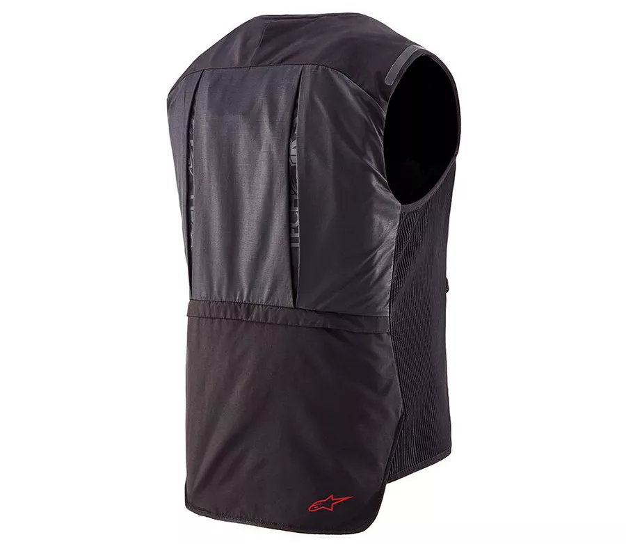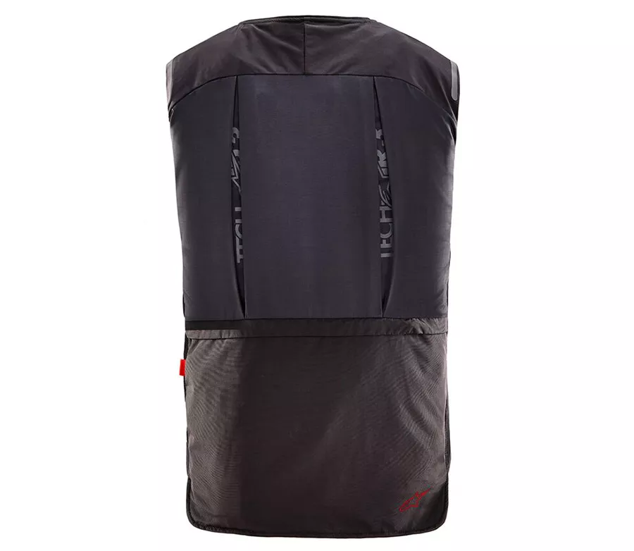 - Tech-Air® 3 obsahuje kompaktní elektronickou řídicí jednotku (ECU) Alpinestars Pro 3. generace, kterou lze nalézt v kapse ECU umístěné nahoře v zadní části vesty
