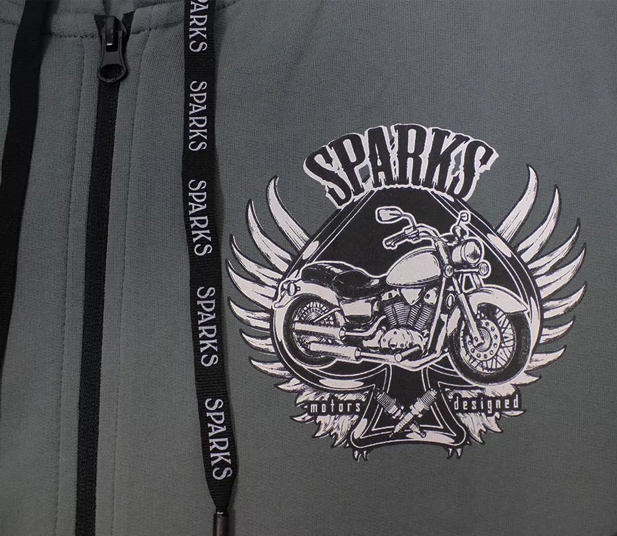 - kvalitní mikina ze 100% bavlny - tkanička pro úpravu obvodu kapuci s logem Sparks - label s logem Sparks na boku mikiny - zapínání na zip - potisk na hrudi i zádech - dvě přední kapsy - super design a kvalitní provedení