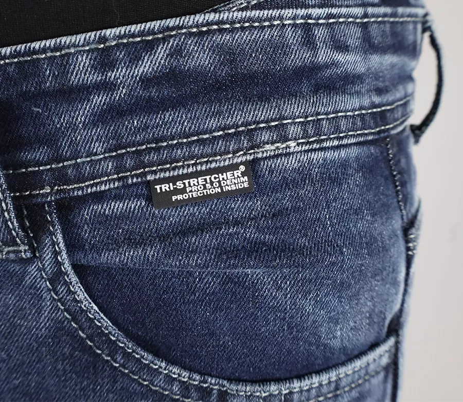 Nástupce oblíbených Micas Urban džín, které nyní neobsahují kevlarovou vrstvu. Micas džíny jsou podšity novým materiálem Tri-Stretcher® PRO 5.0 Denim na strategických místech – kolena, boky a zadek. Tento materiál sám v jedné vrstvě splňuje nejpřísnější certifikační požadavky třídy AAA. Tímto spojením vznikly džíny, které jsou na vrcholu bezpečnosti, co se týče otěruvzdornosti. - Svrchní materiál: elastický denim 11,5 oz, 98 % bavlna, 2 % elastan - Podšité Tri-Stretcher® PRO 5.0 Denim na strategických místech - CE level 2 chrániče součástí - Příprava na chrániče boků - Kolenní chrániče je možné posouvat do stran a na potřebnou výšku. - Přístup ke kolenním chráničům zvenku - 2 přední, 2 zadní a jedna mincová kapsa - zapínání na knoflík a zip - zvýšená zadní část pasu pro komfort při jízdě - CE Certifikováno dle EN 17092-2:2020, třída AAA - zip na dolní části nohavice pro lepší padnutí Vlastnosti materiálu Tri-Stretcher® PRO 5.0 Denim Základní myšlenkou bylo vyvinout tkaninu, která bude vynikat pohodlím, bezpečností a zároveň splní náročné požadavky na střih, opotřebení, roztržení, otěruvzdornost a chemickou odolnost finálního výrobku při CE Certifikačních testech. Tri-Stretcher® PRO 5.0 Denim je speciální směsí Aramidu, Nylonu, Polyesteru, bavlny a Elastanu patentovaná společností Bikers Crown s.r.o., která je výhradním vlastníkem a materiálu a zároveň designérem motocyklových džínů Trilobite. Díky nedávným průlomům v oblasti syntetických vláken mohou být džíny pro jízdu na motocyklu lehčí než kdykoliv předtím. Nová generace syntetických a polyethylenových vláken umožňuje smíchat Polyester, Nylon, Elastan a další příze, například i přírodní, do zcela nové, sofistikované tkaniny pro výrobu motocyklových džínů Trilobite. Tri-Stretcher® PRO 5.0 Denim je moderní technická tkanina, která je budoucností jízdy na motocyklu. Vyrábí se ze směsi materiálů z rodiny polyamidů jako je Nylon a aromatických polyamidů, jako je Aramid nebo polyuretanová vlákna vyrobená z Elastanu, a zároveň zahrnuje přírodní bavlněnou tkaninu. Tato látka je jedinečná svou úžasnou pevností a zároveň nízkou hmotností. Tri-Stretcher® PRO 5.0 Denim je jeden „chytrý tým“ různých vláken spletených dohromady, které vás v případě nehody ochrání stejným způsobem jako celokožená kombinéza, ale bez kompromisu na pohodlí. Značka TRILOBITE® nabízí svým zákazníkům možnost využití tzv. TRILOBITE® Crash programu. Každý jezdec, který je účastníkem dopravní nehody a nosí motocyklové oblečení TRILOBITE®, které během nehody poškodí, má šanci získat zcela nové produkty. Tento program funguje tak, že svou nehodu popíšete, zdokumentujete a pošlete informace na centrálu spolu s poškozenými kalhotami. Výrobce TRILOBITE® vše zanalyzuje a poznatky použije při vývoji dalších výrobků. V případě splnění všech podmínek vám zašle zcela nový kus.