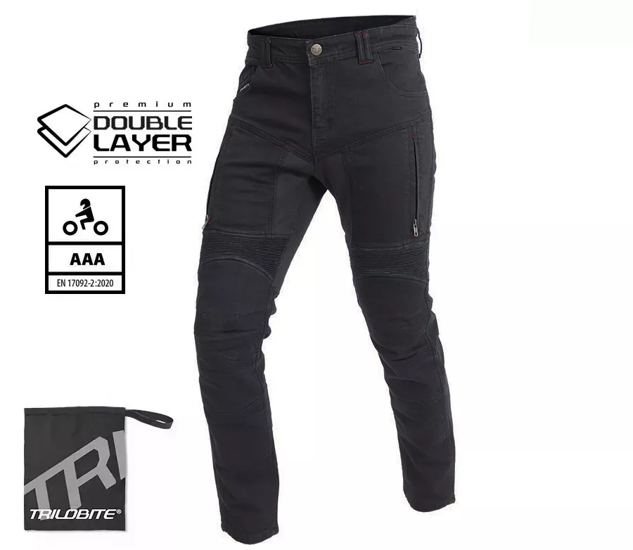 Trilobite. Tri-Stretcher® PRO 5.0 Denim je moderní technická tkanina, která je budoucností jízdy na motocyklu. Vyrábí se ze směsi materiálů z rodiny polyamidů jako je Nylon a aromatických polyamidů, jako je Aramid nebo polyuretanová vlákna vyrobená z Elastanu, a zároveň zahrnuje přírodní bavlněnou tkaninu. Tato látka je jedinečná svou úžasnou pevností a zároveň nízkou hmotností. Tri-Stretcher® PRO 5.0 Denim je jeden „chytrý tým“ různých vláken spletených dohromady, které vás v případě nehody ochrání stejným způsobem jako celokožená kombinéza, ale bez kompromisu na pohodlí.
