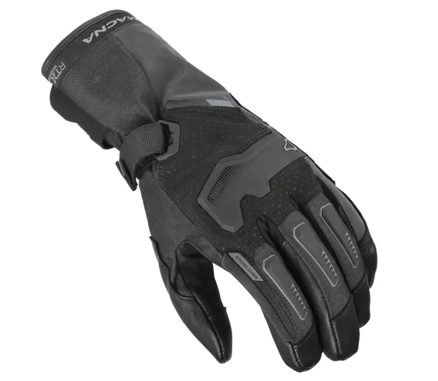 MACNA Terra 2.0 jsou dlouhé cestovní rukavice připravené na dlouhé výpravy i nepříznivé počasí. Nabízí vysoký komfort, voděodolnost a ochranu bez nutnosti dlouhého rozjíždění materiálu. Odolnost a nepromokavost Voděodolná membrána Raintex chrání před deštěm, zatímco kozí kůže zajišťuje přirozenou prodyšnost, cit v rukou a měkkost bez nutnosti zajíždění. Dlaň je zesílena syntetickým nubukem pro vyšší odolnost proti oděru. Vodu zachycenou mezi membránou a vnější vrstvou odvádí systém Water Exhaust™. Stažení na dlouhé manžetě i zápěstí umožňuje přesné přizpůsobení. Komfort a funkční detaily Ergonomické prvky Ergothumb™ a Ergopink™ omezují tlakové body a zvyšují pohodlí při dlouhé jízdě. Přezka 30° Buckle™ podporuje volnost pohybu zápěstí. Materiál Night Eye™ odráží světlo v noci, aniž by měnil vzhled přes den. Vodivý materiál na špičce palce a ukazováku umožňuje ovládání dotykových displejů, ukazovák je navíc vybaven stěrkou pro rychlé setření vody z plexi. Bezpečnost Klouby a prsty chrání flexibilní prvky tlumící náraz. Dlaň je osazena pevným chráničem R.I.S.C.™ z TPU s vysokou odolností proti nárazu i oděru. Vlastnosti • voděodolná membrána Raintex • kozí kůže s přirozenou prodyšností a měkkostí • zesílená dlaň ze syntetického nubuku • Water Exhaust™ pro odvod nahromaděné vody • stažení na manžetě a zápěstí pomocí suchého zipu • Ergothumb™ a Ergopink™ pro vyšší komfort • 30° Buckle™ pro volnost pohybu • reflexní materiál Night Eye™ • kompatibilní s dotykovými displeji • stěrka na plexi na ukazováku • chrániče kloubů a prstů • dlaňový chránič R.I.S.C.™ z TPU
